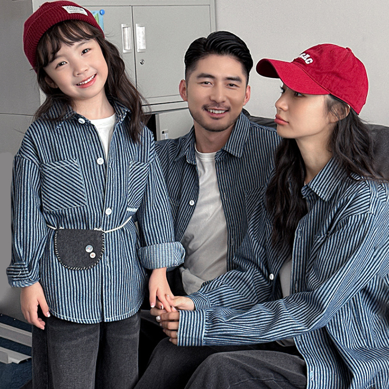 亲子装衬衫一家三口儿童母女2025新款秋装长袖条纹百搭外套母子装