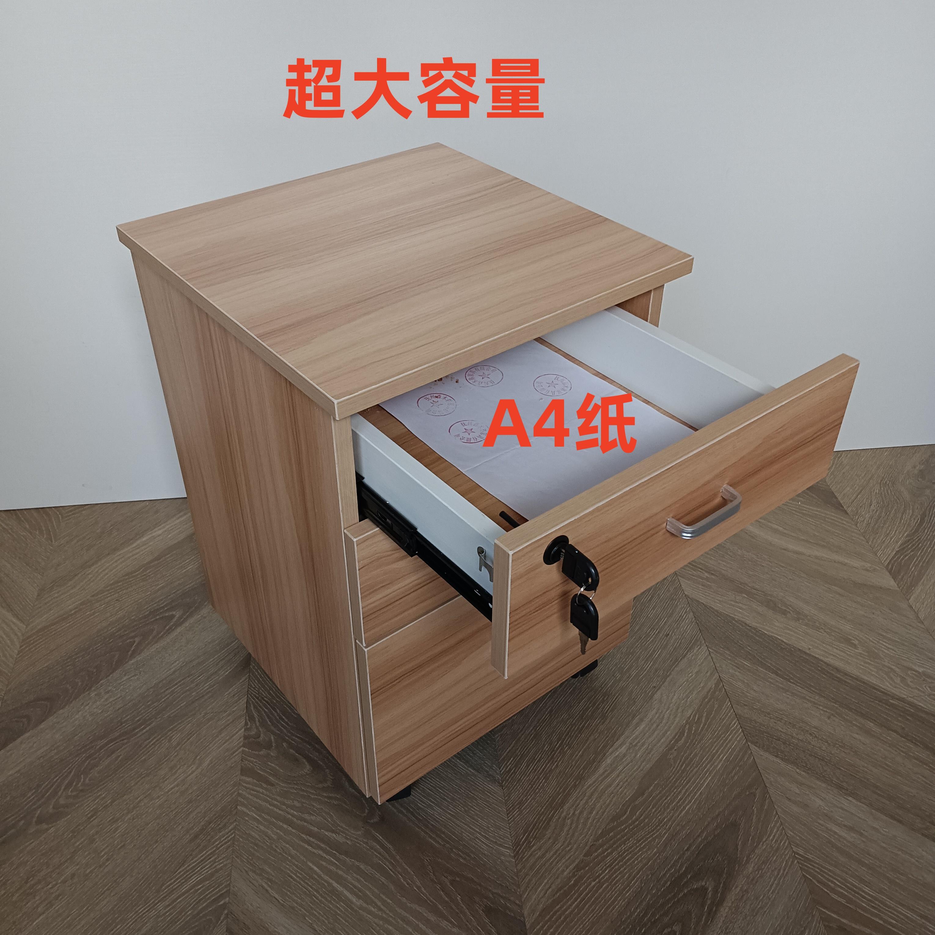 木质三抽带锁保险柜床头柜矮柜A4文件资料储物小柜子办公桌下带轮