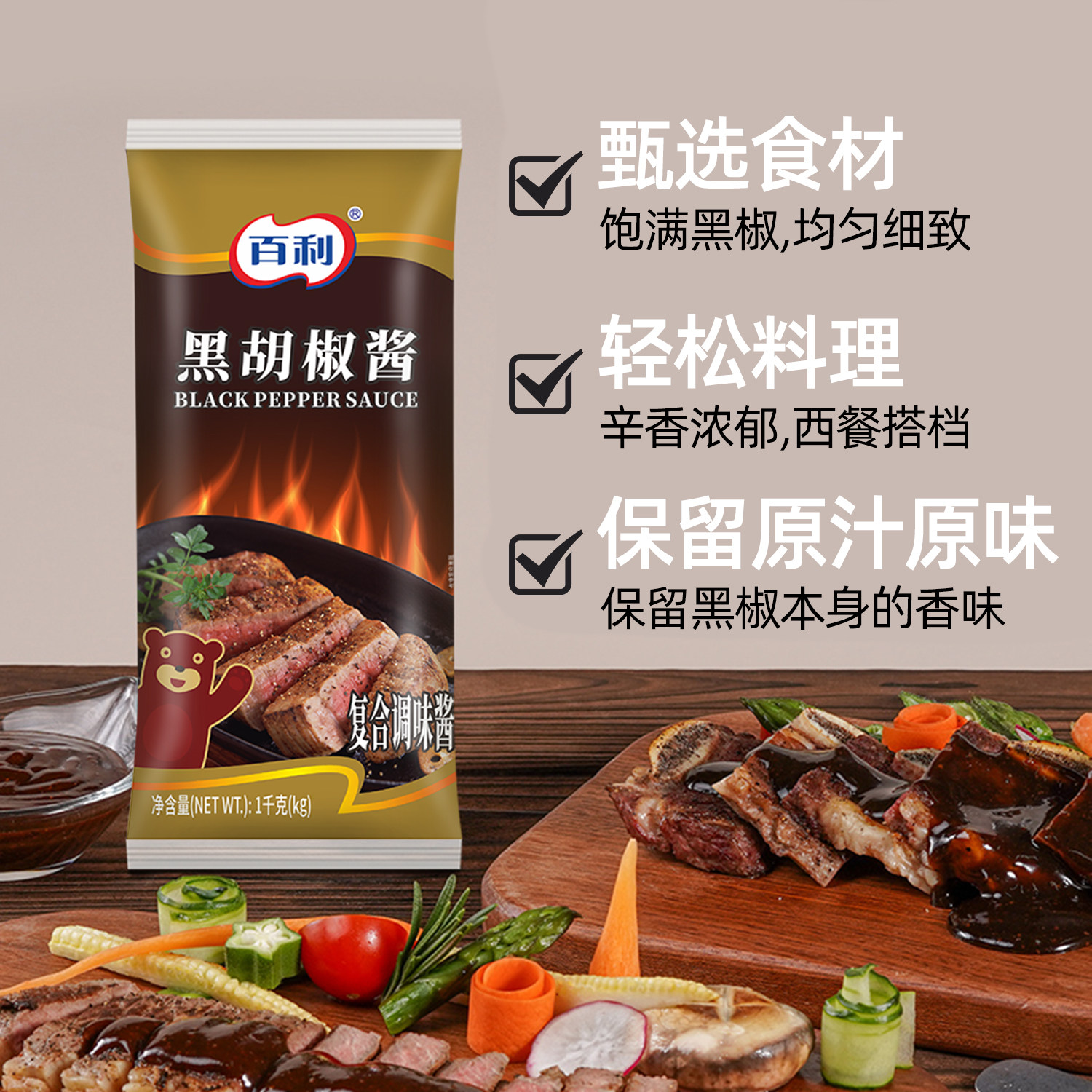 百利黑胡椒酱牛排意大利面黑椒酱汁烤肉烧烤牛柳拌饭酱商用1kg