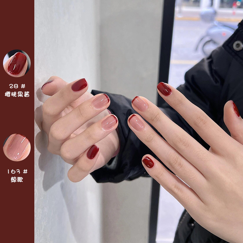 指甲油2025新款免烤快干持久高级显白水性可撕拉女酒红车厘子色