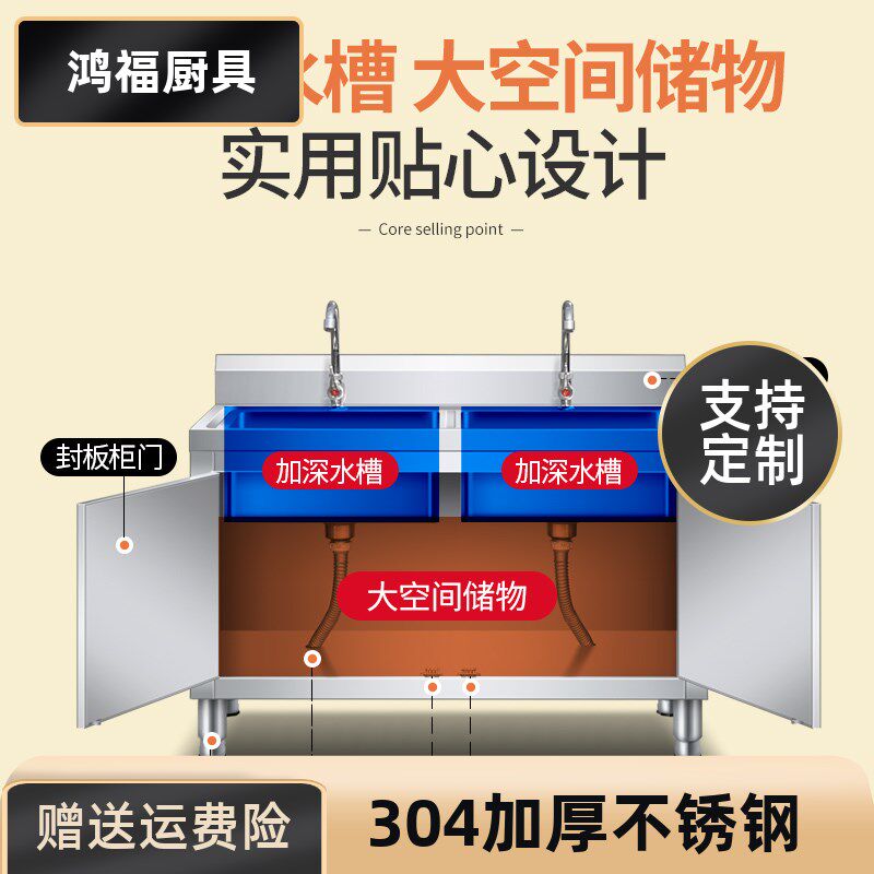 304厨房不锈钢水池槽柜奶茶店饭店洗菜盆水槽双槽厨房双槽洗刷池