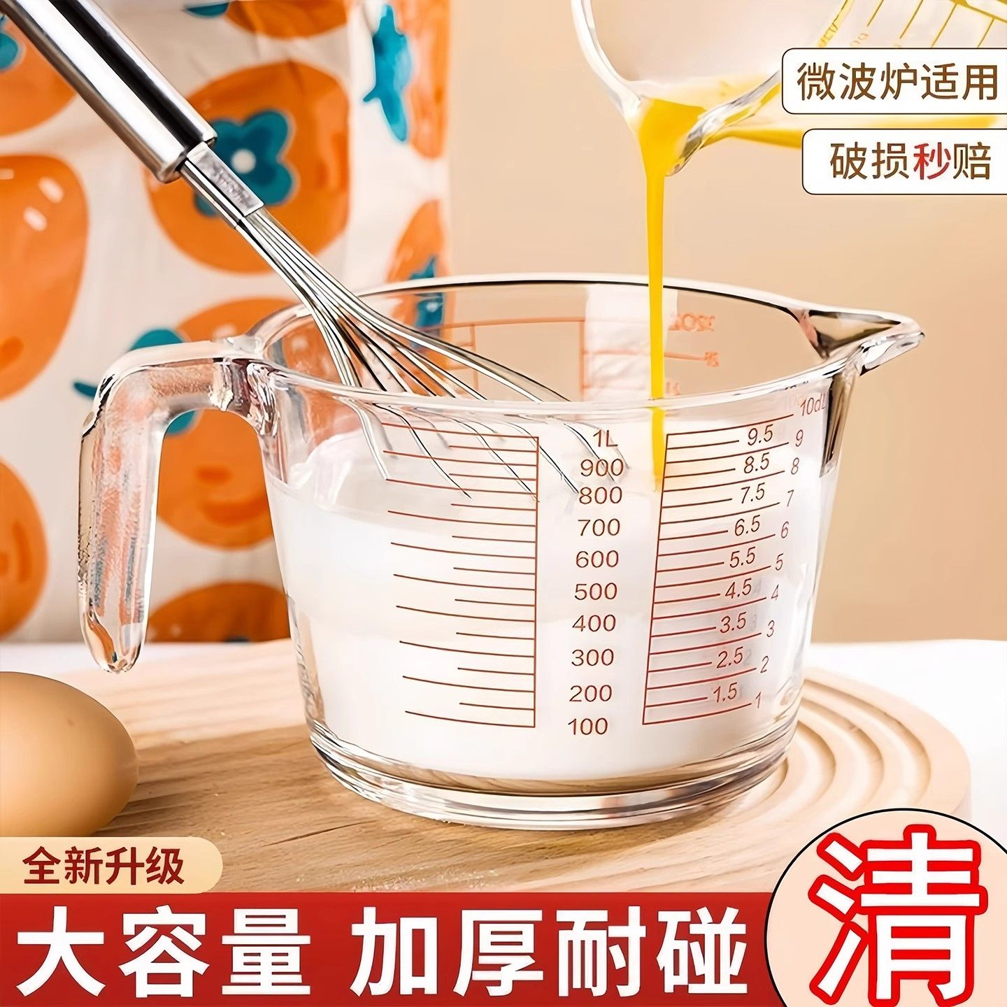 玻璃量杯带刻度耐高温家用牛奶刻度杯食品级烘焙打蛋杯子计量水杯