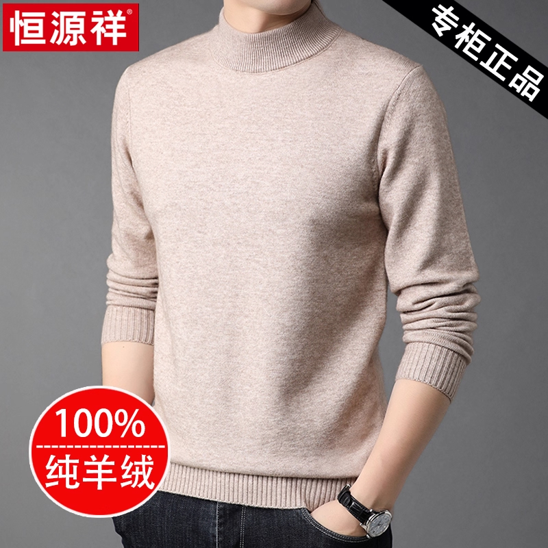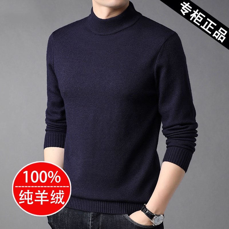 鄂尔多斯市羊绒衫男100%纯羊绒毛衣秋冬季半高领针织加厚打底羊衫