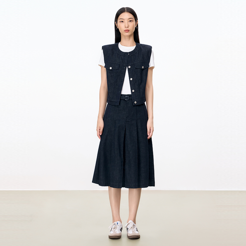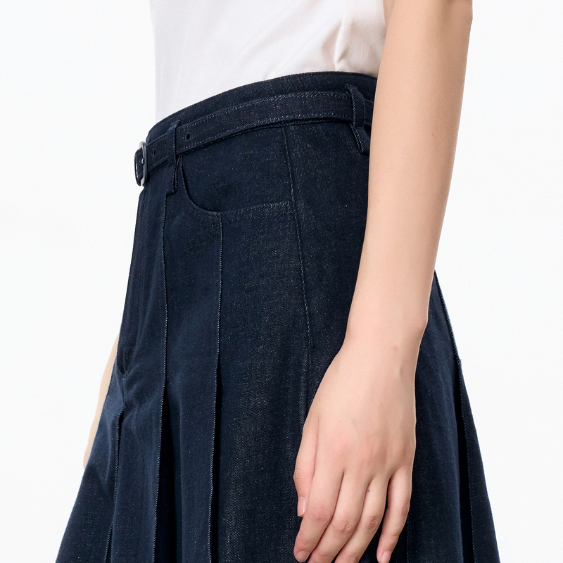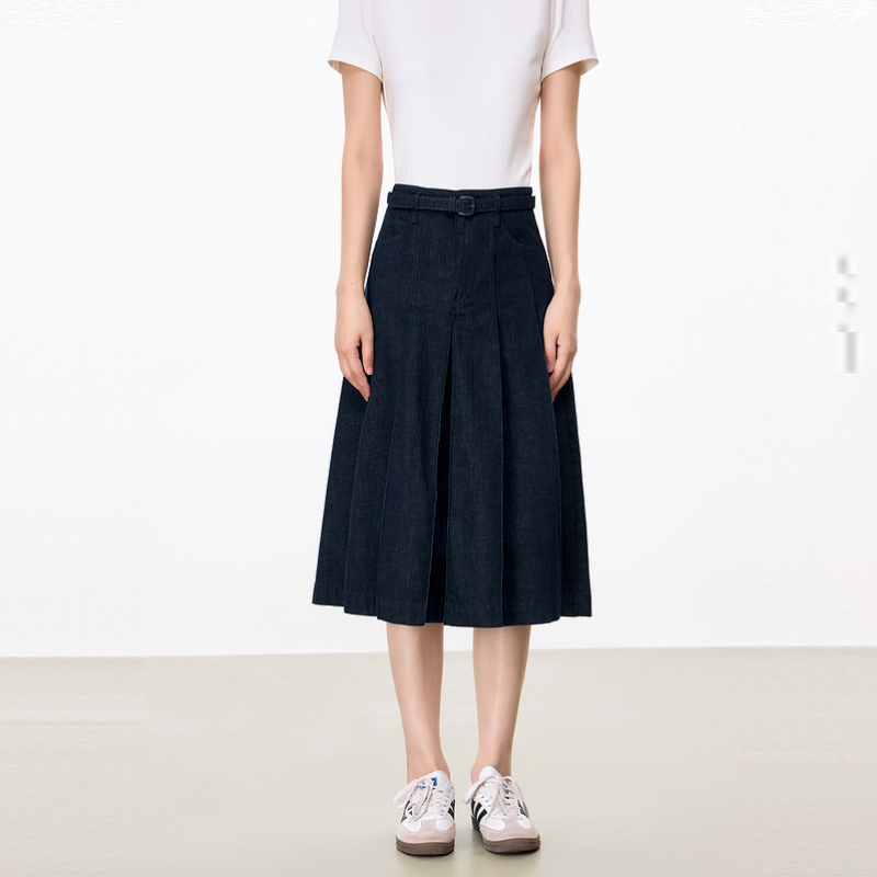 水云间女装 高腰通勤时尚复古牛仔裙半身裙附腰带2025秋季新款
