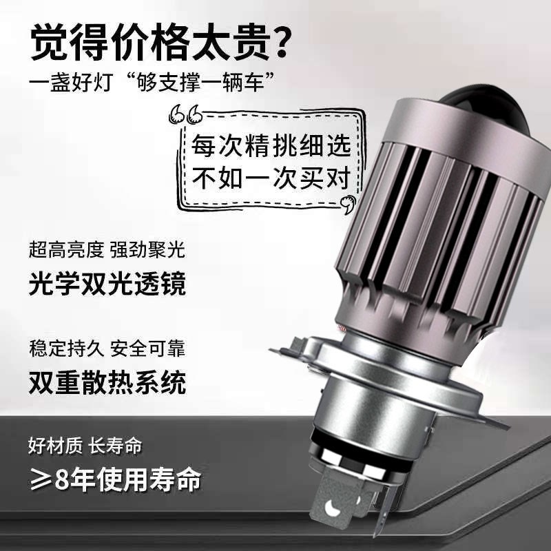 石栏犀利眼摩托车电动车led透镜大灯灯泡超亮强光H4远近光12V车灯