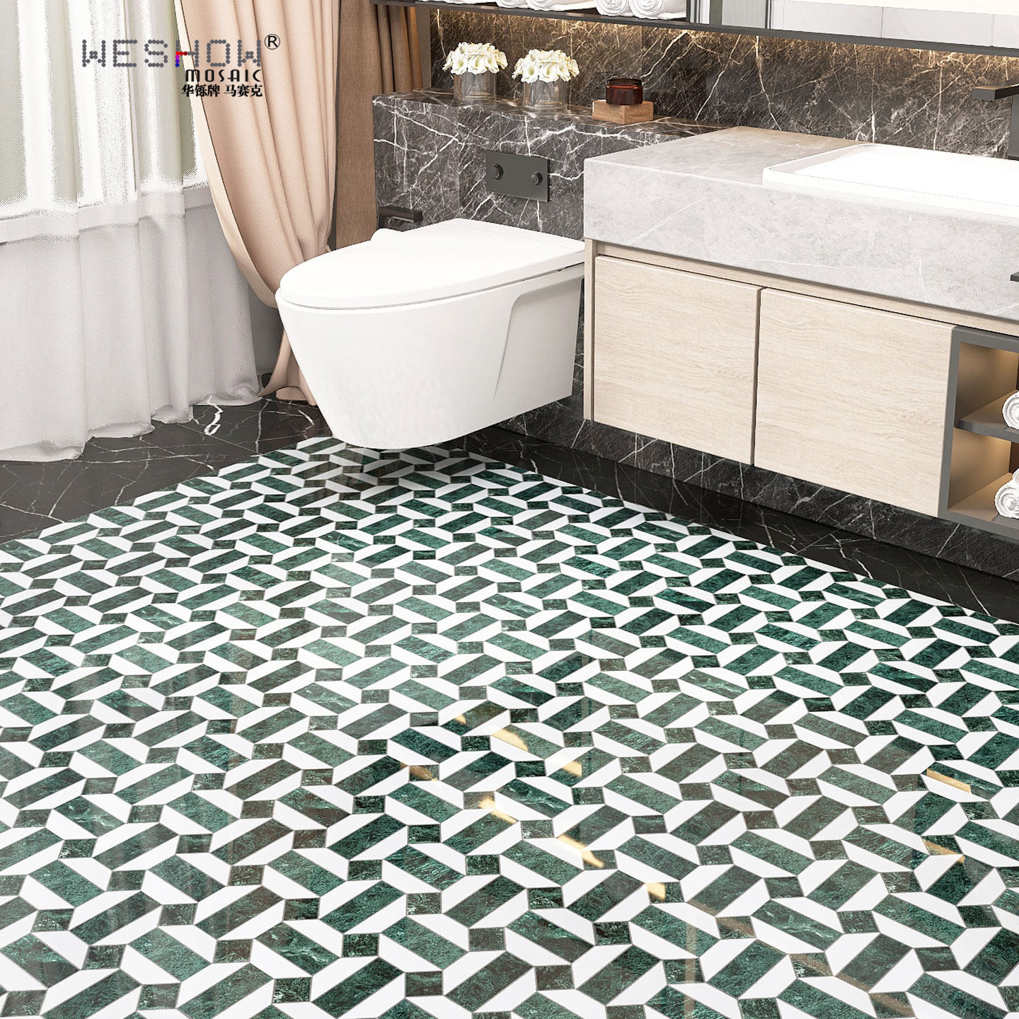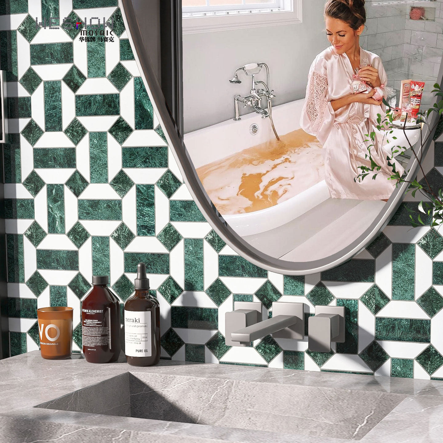 卫生间瓷砖墙砖防滑地砖天然大理石大花绿石材复古墙砖墨绿马赛克