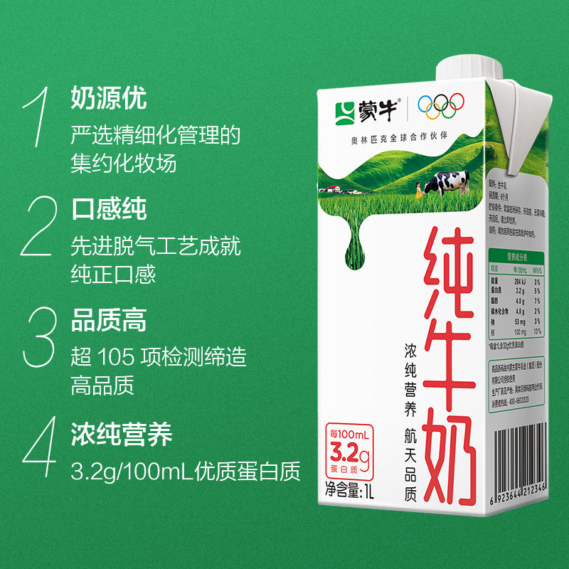 蒙牛纯牛奶1L*6盒整箱旋盖升级家庭家用分享装大容量