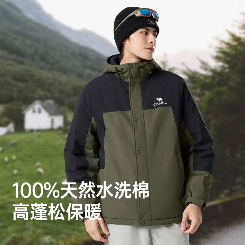 骆驼男装棉衣男款2024秋冬户外棉袄加绒厚保暖防风水棉服夹克外套