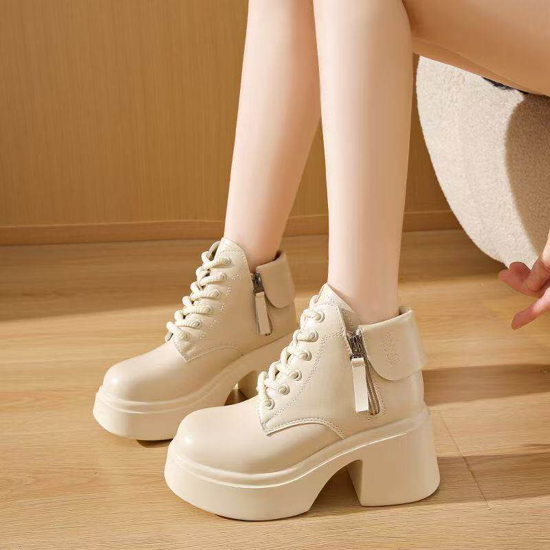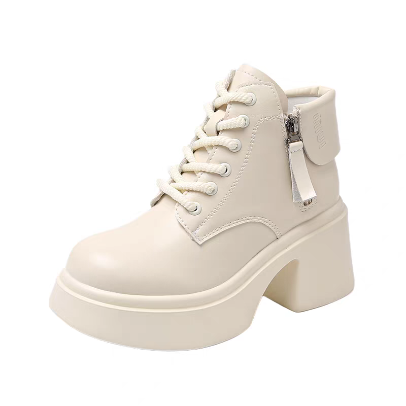 真皮厚底显瘦马丁靴女2025秋冬新款小个子高跟短靴百搭白色单靴子