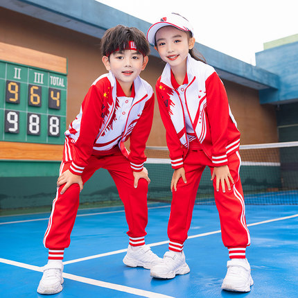 幼儿园园服秋装小学生校服中国红儿童演出服一年级班服三四件套装