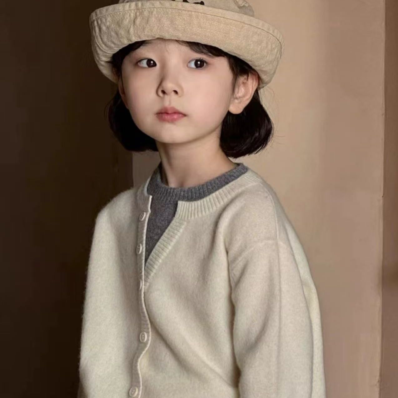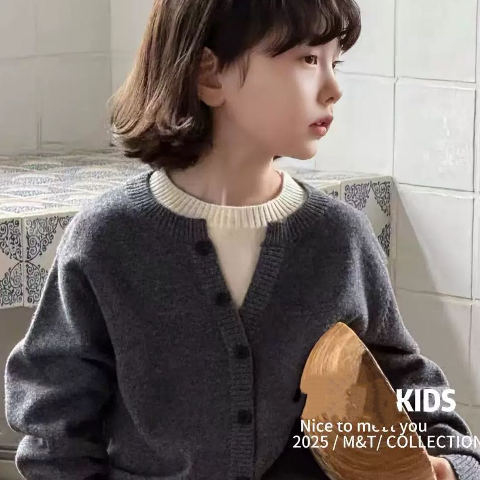 秋冬季儿童假针织两件设计款套头毛衣男女童韩版洋气打底衫简约