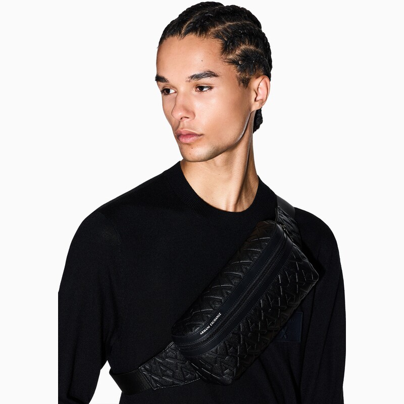 AX/阿玛尼男士盒型压花斜挎腰包