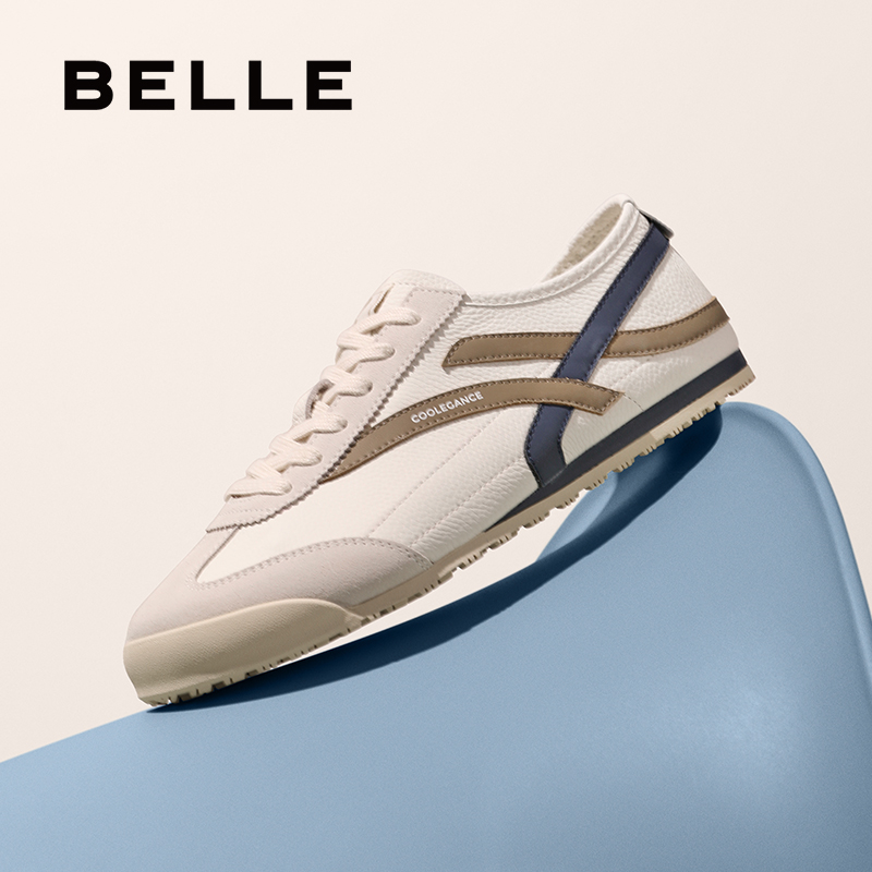 百丽撞色休闲板鞋男2025新款夏季商场同款复古潮搭德训鞋8TE01BM5