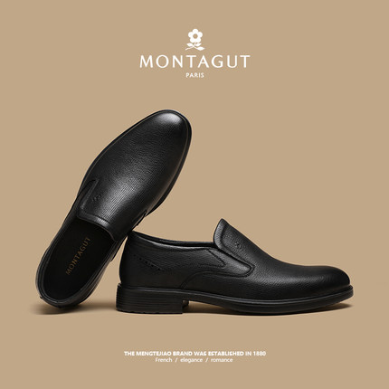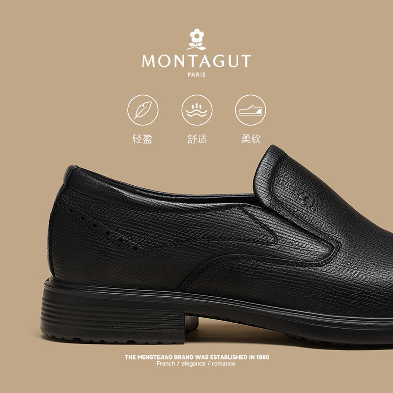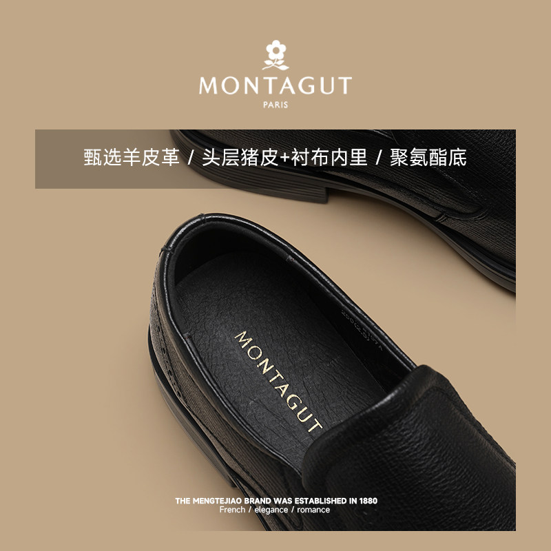 梦特娇小羊皮男鞋一脚蹬皮鞋春季真皮防滑工作父亲商务休闲乐福鞋