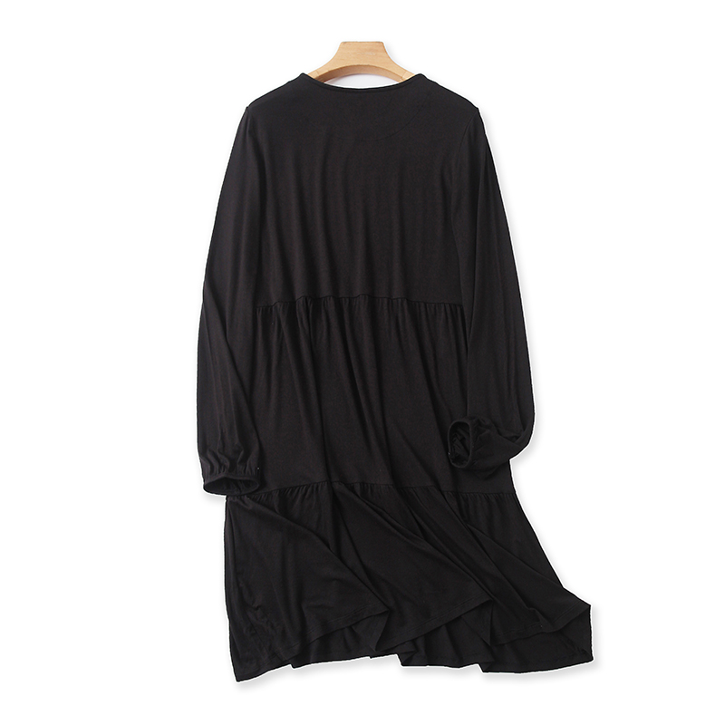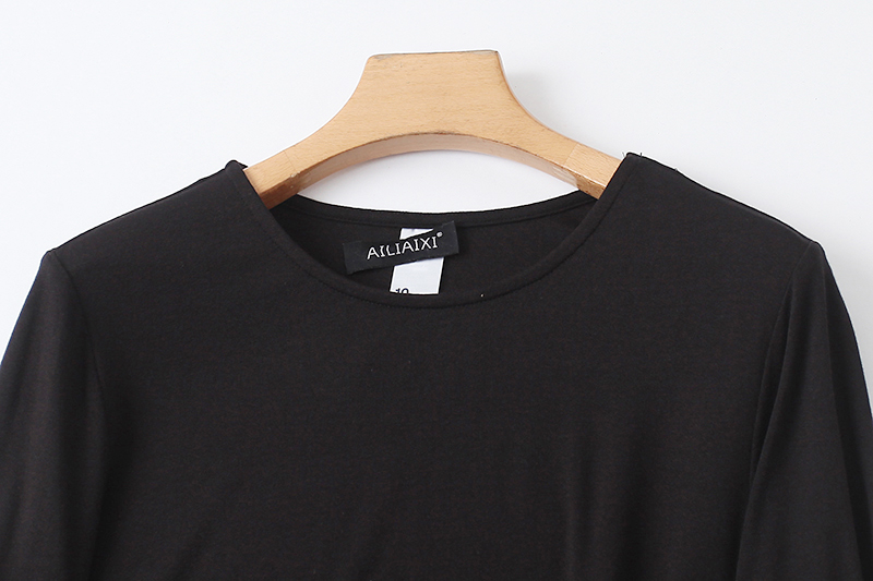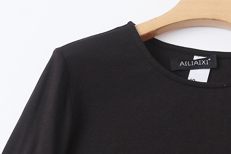 外贸长袖拼接连衣裙 夏季新款弹力圆领A字裙女套头中长裙子Q/15-2