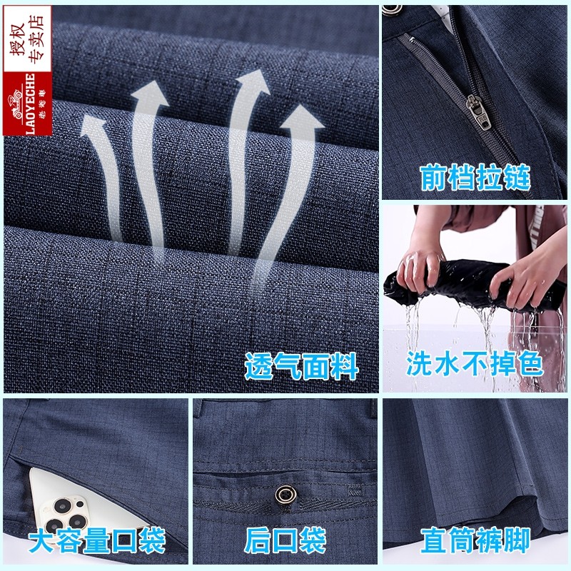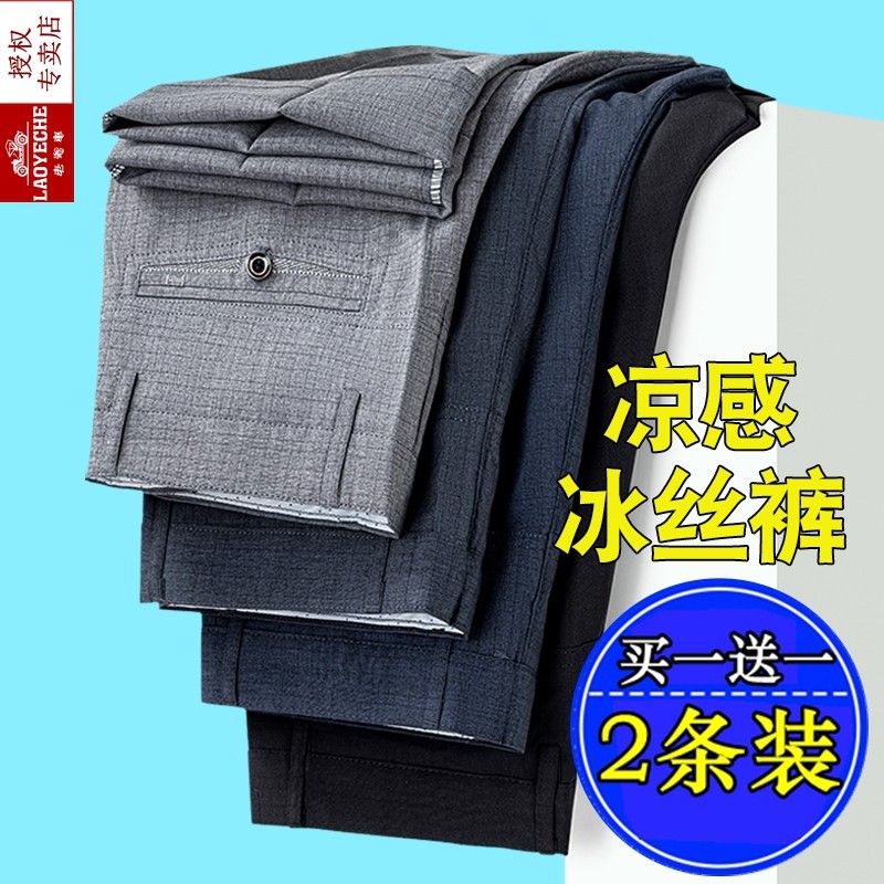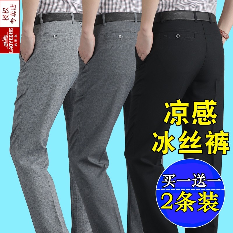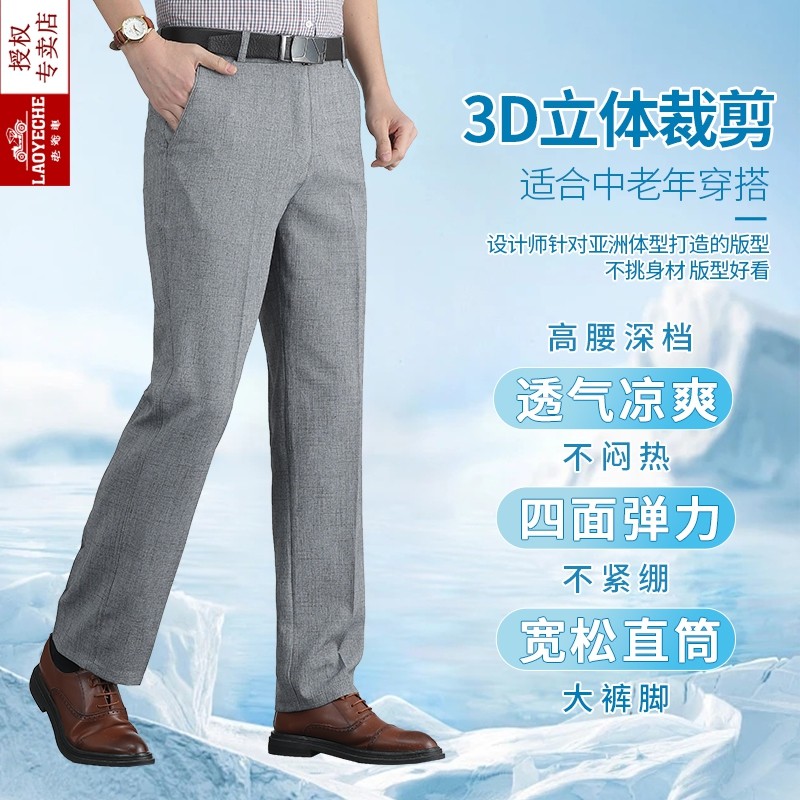 老爷车夏季薄款冰丝亚麻裤中年男士休闲裤宽松中老年爸爸西装裤子