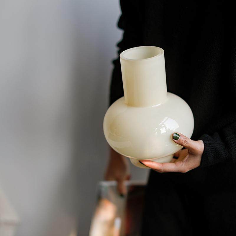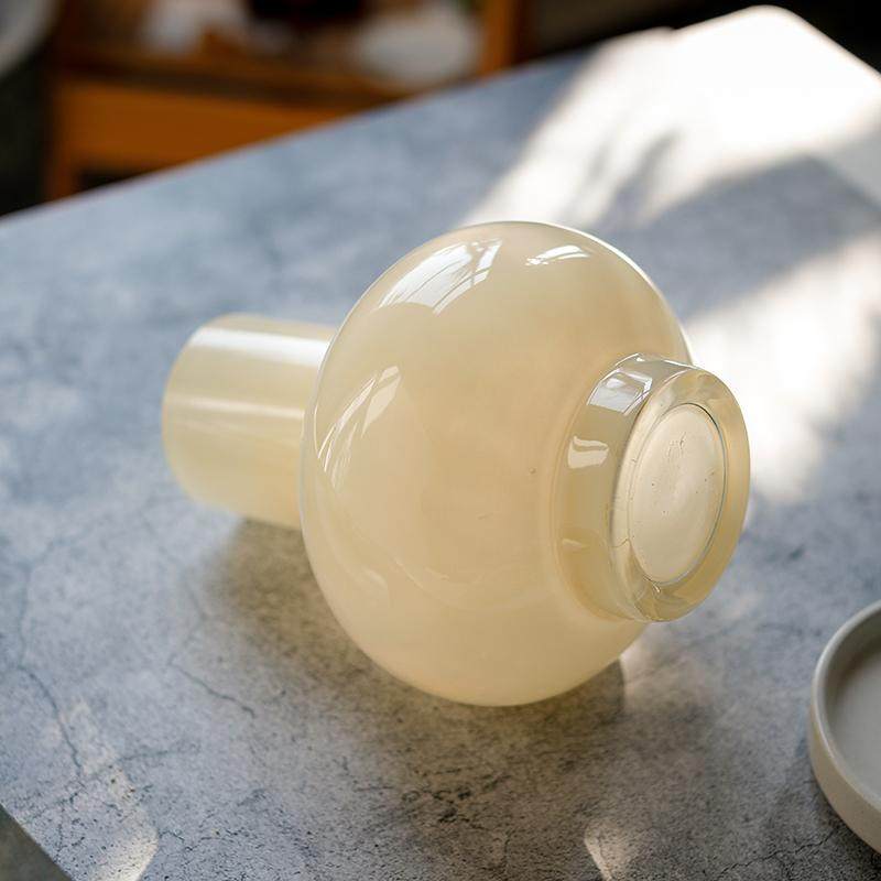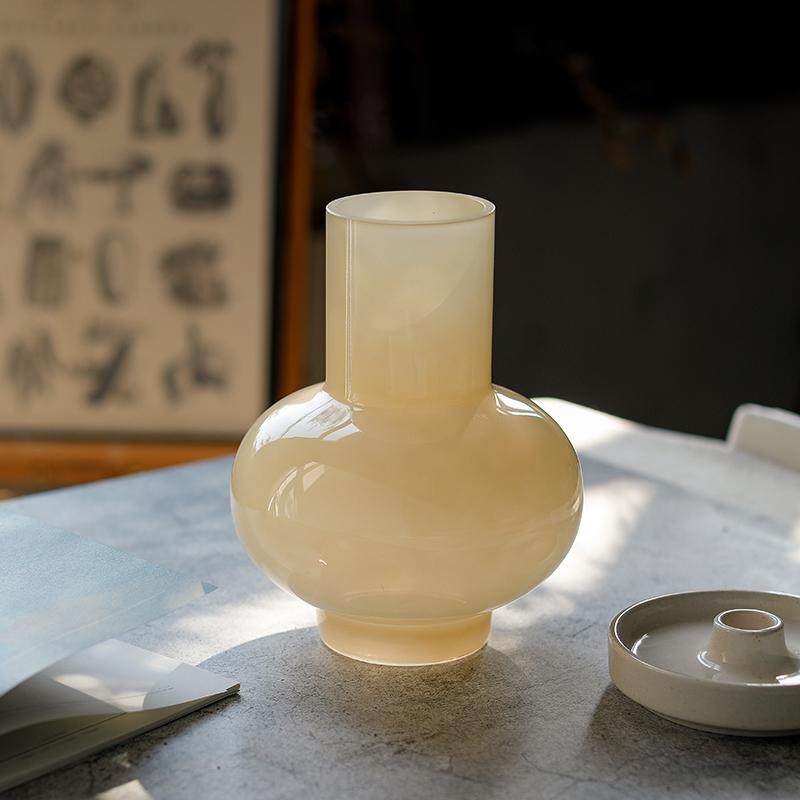 法式中古玉感玻璃花瓶鲜花插花干花摆件酒店吧台客厅样板间装饰品