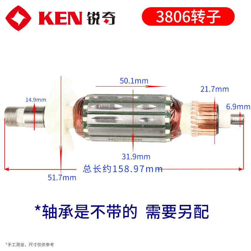 锐奇KEN修边机木工雕刻机铝塑板开槽倒角配件3906NB/3806转子