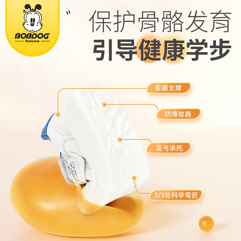 巴布豆童鞋儿童学步鞋2025春秋幼儿园女童皮面运动鞋男童小白鞋子