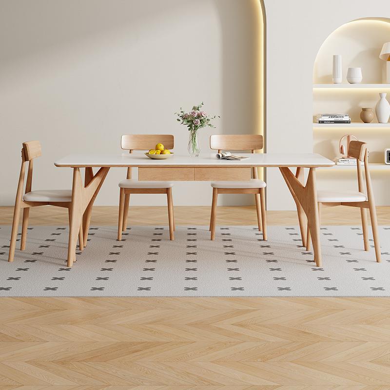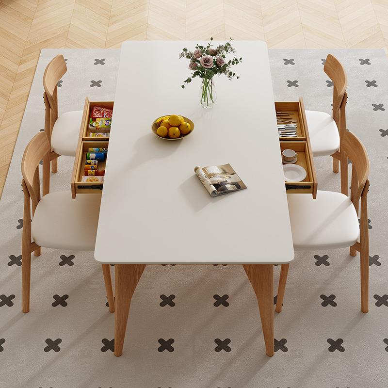 高档实木岩餐桌椅现代慕简约客厅小户型佐家用板原木长方形饭桌带