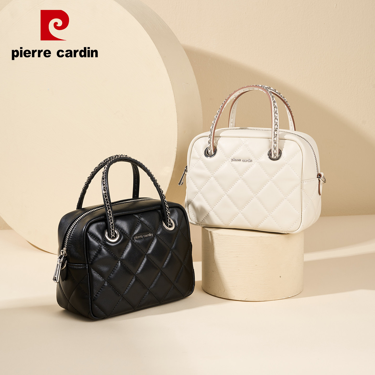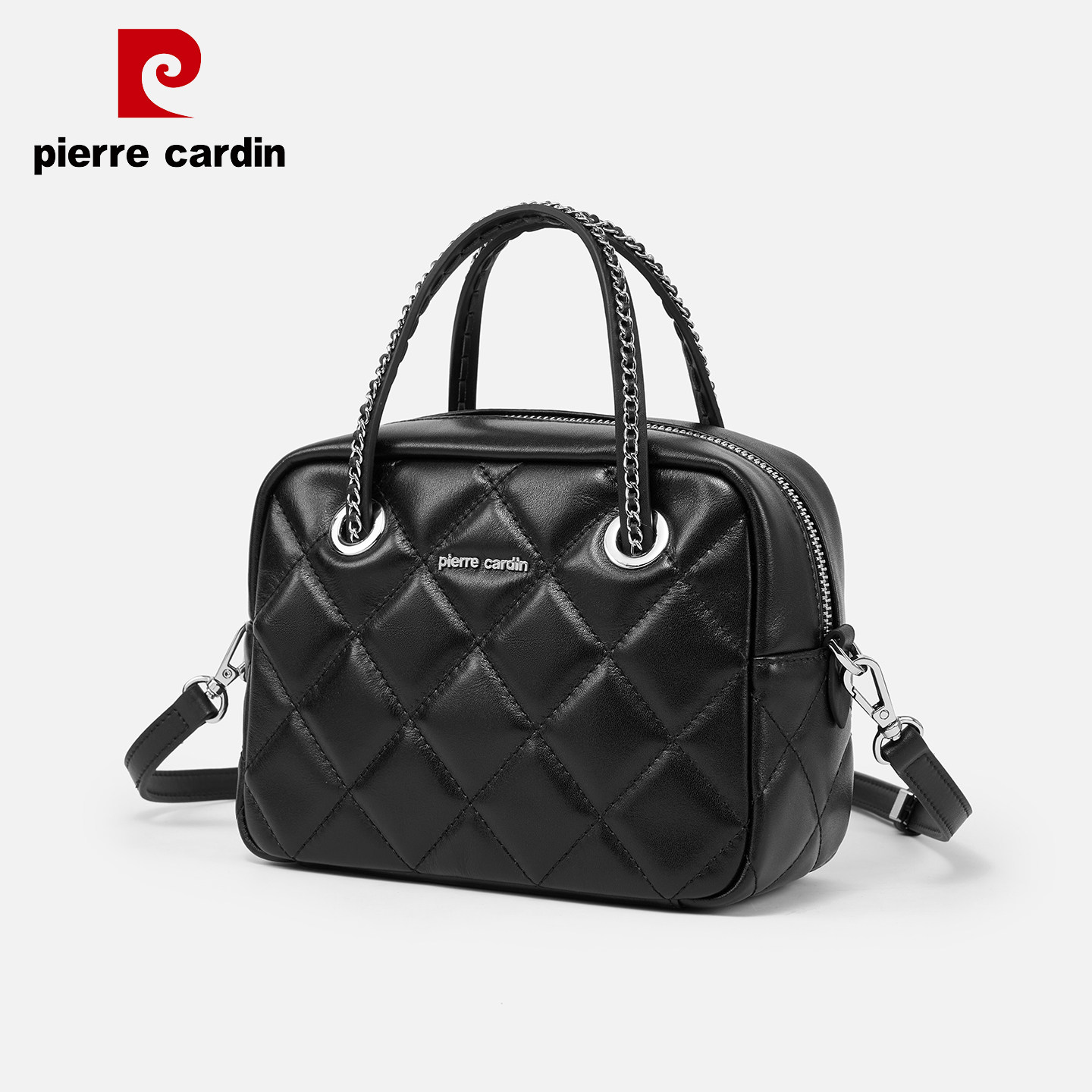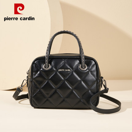 皮尔卡丹轻奢时尚菱格链条2025新款女头层单肩斜挎手提枕头小方包