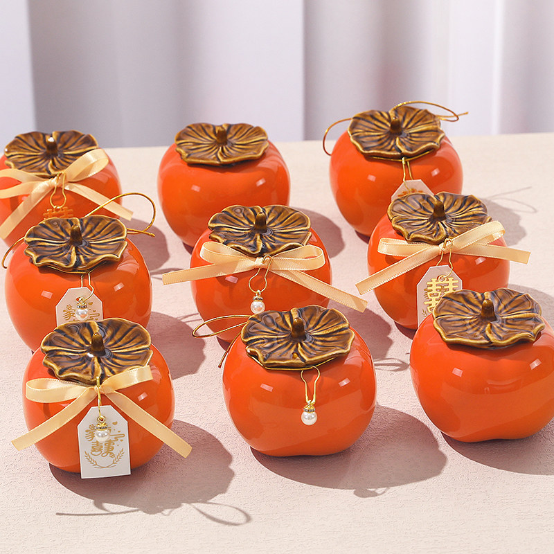 柿柿如意订婚创意摆件结婚柿子喜糖盒婚庆礼盒乔迁之喜暖房礼物
