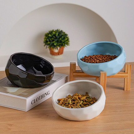 陶瓷木架狗碗高脚猫狗碗中小型狗碗增高法斗宠物斜口碗防打翻