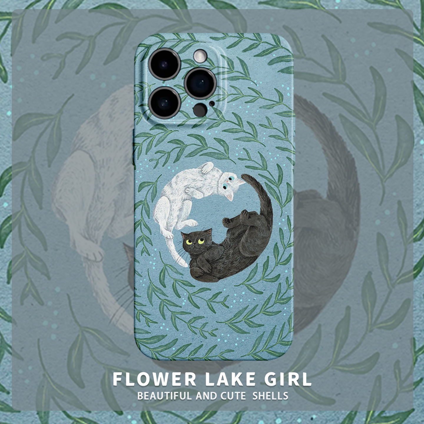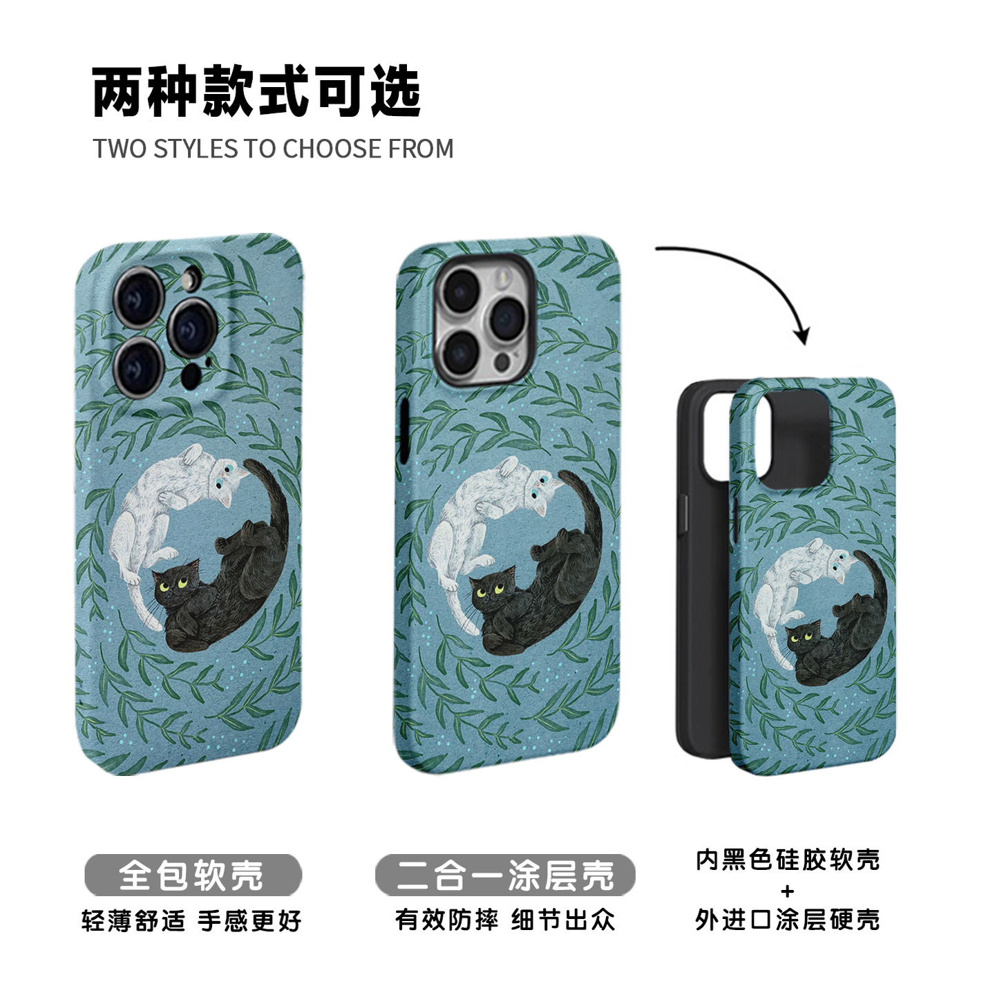【猫卦阵】柳枝黑白猫咪适用iPhone16/15promax手机壳华为P70Pro苹果13OPPOreon9软vivoS15一加ACE3红米K80