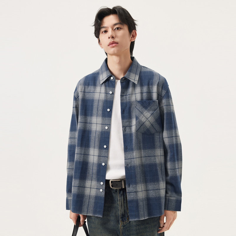 gxg.jeans男装 蓝色格纹简约通勤宽松长袖衬衫上衣男 25年秋新品