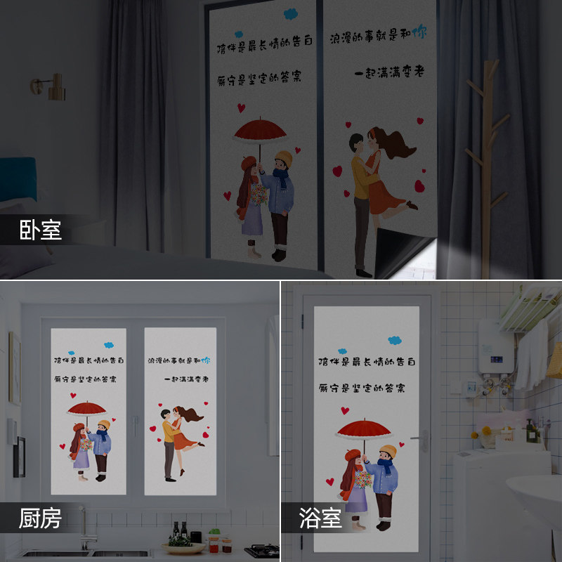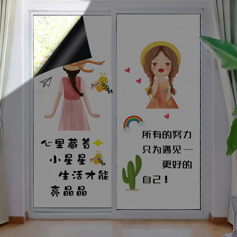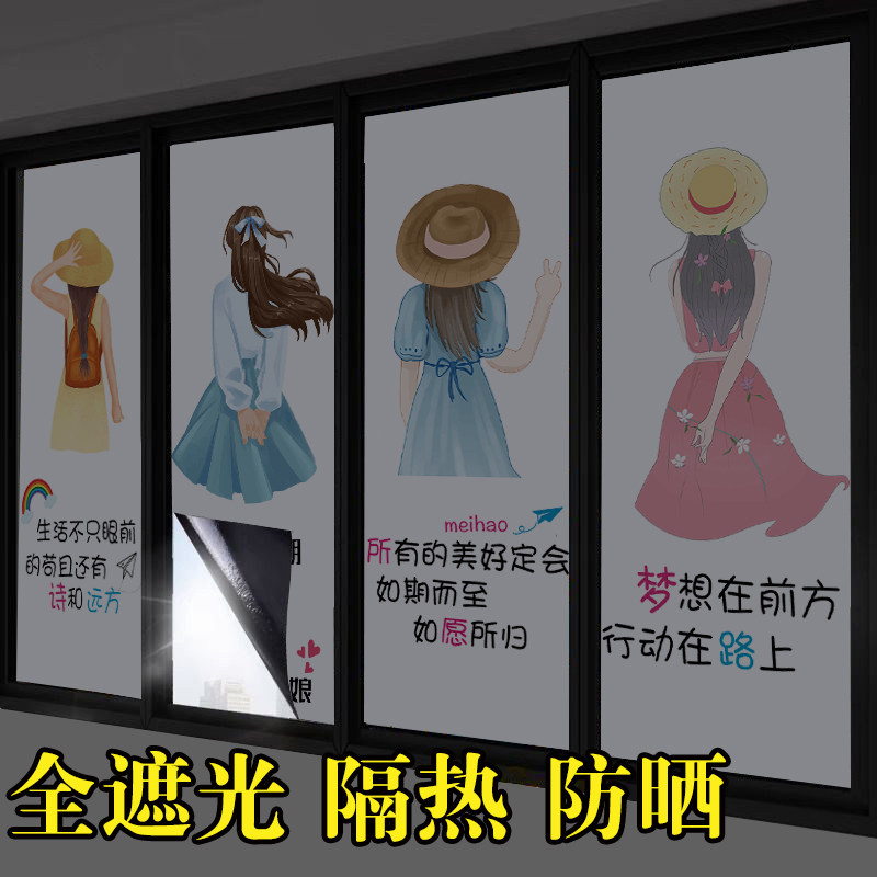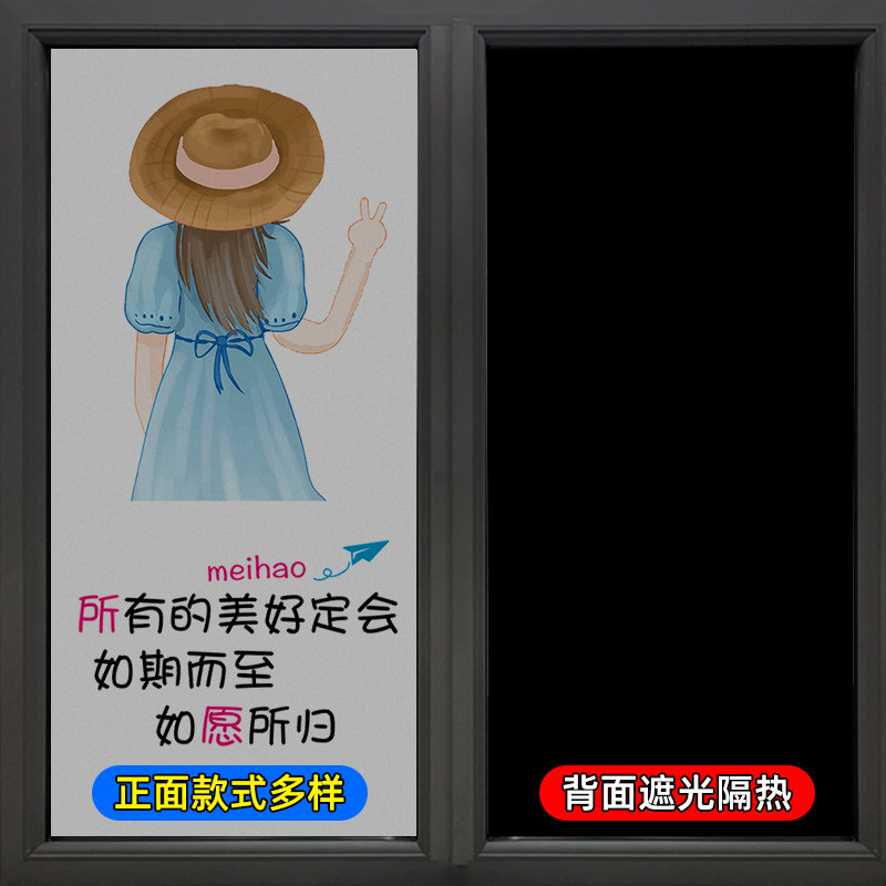 全遮光玻璃贴纸不透光遮阳防晒防窥磨砂贴膜阳台卧室窗户遮阳神器