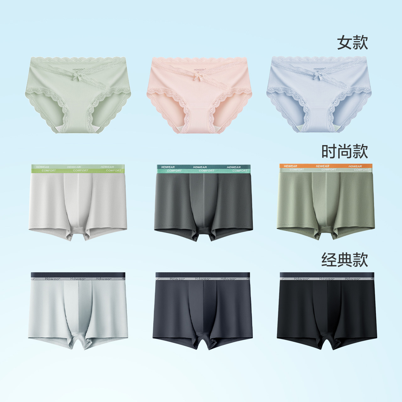 红豆女纯棉抗菌裆莫代尔中腰内裤优雅蕾丝三角裤男士四角平角裤