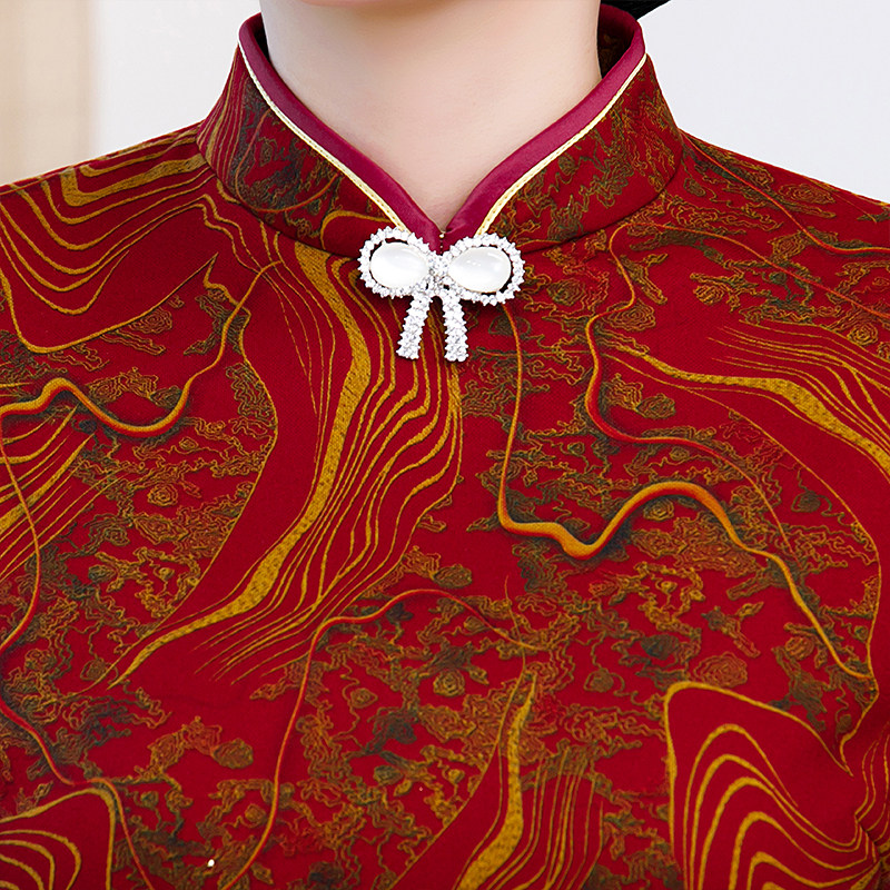 中年妈妈长袖加绒加厚优雅风旗袍