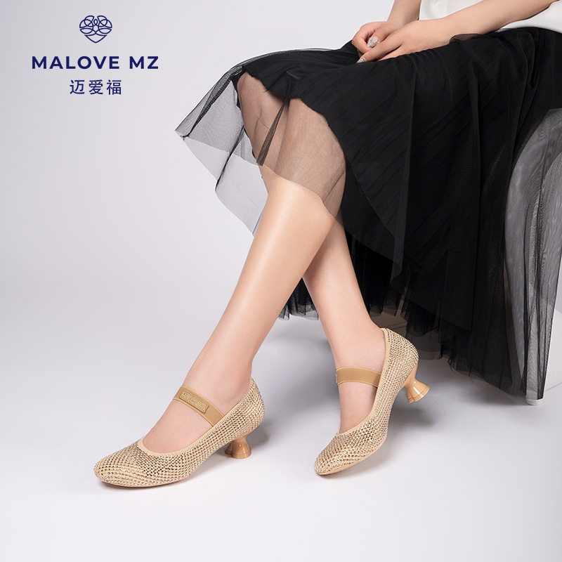 MALOVE MZ女鞋2025新款气质水钻高跟鞋女时尚宴会粗跟单鞋浅口