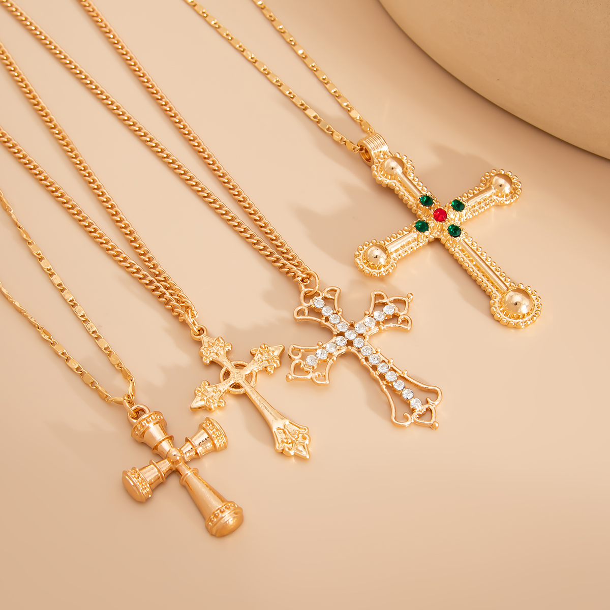 4件套镶钻十字架密链项链套装 欧美嘻哈时尚网红潮人气质旅拍饰品
