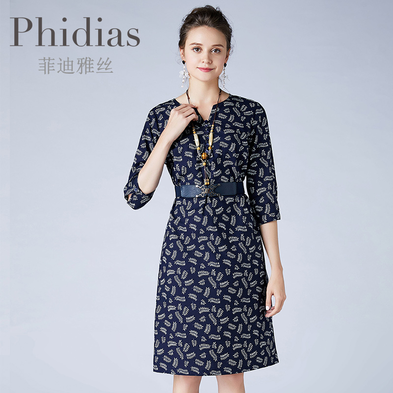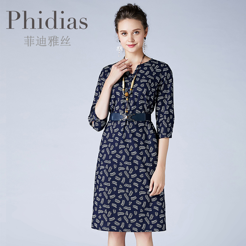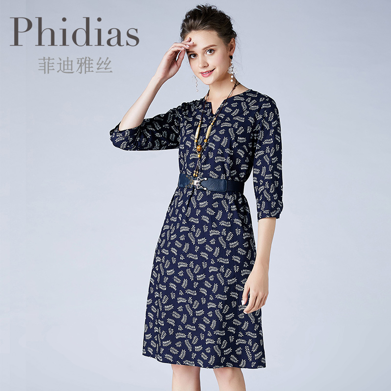 Phidias时尚新款潮流春夏季女装连衣裙女七分袖气质显瘦裙子