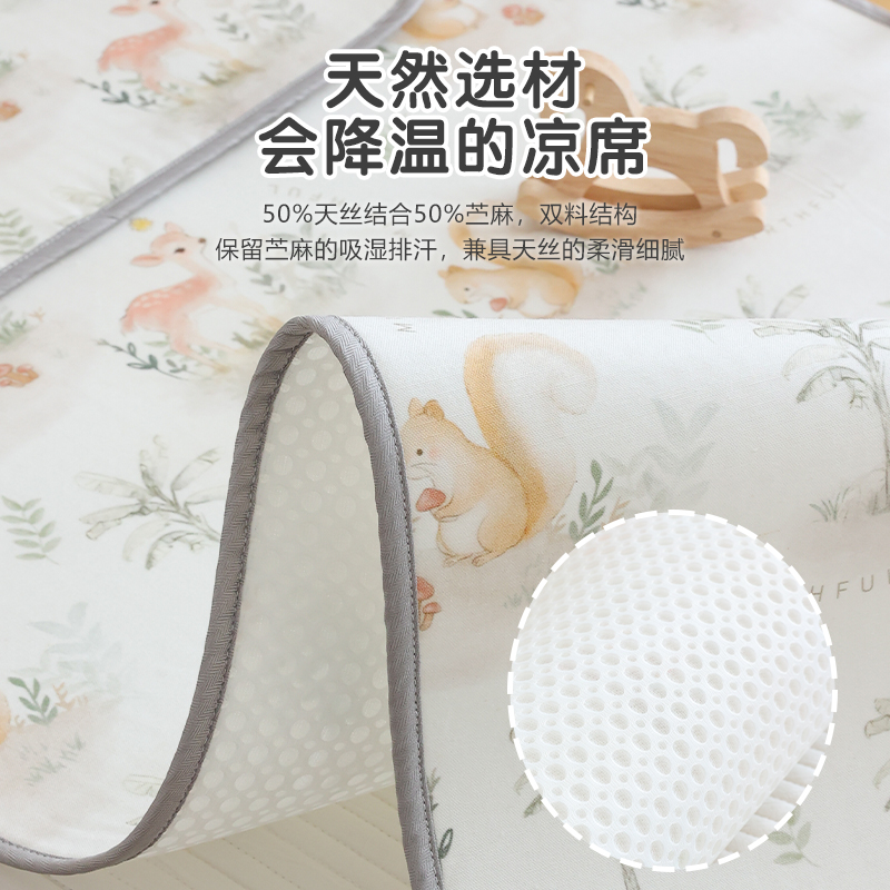 宝宝苎麻凉席夏新生婴儿凉感天丝床单幼儿园儿童午睡软席垫子定制