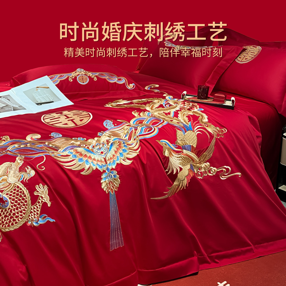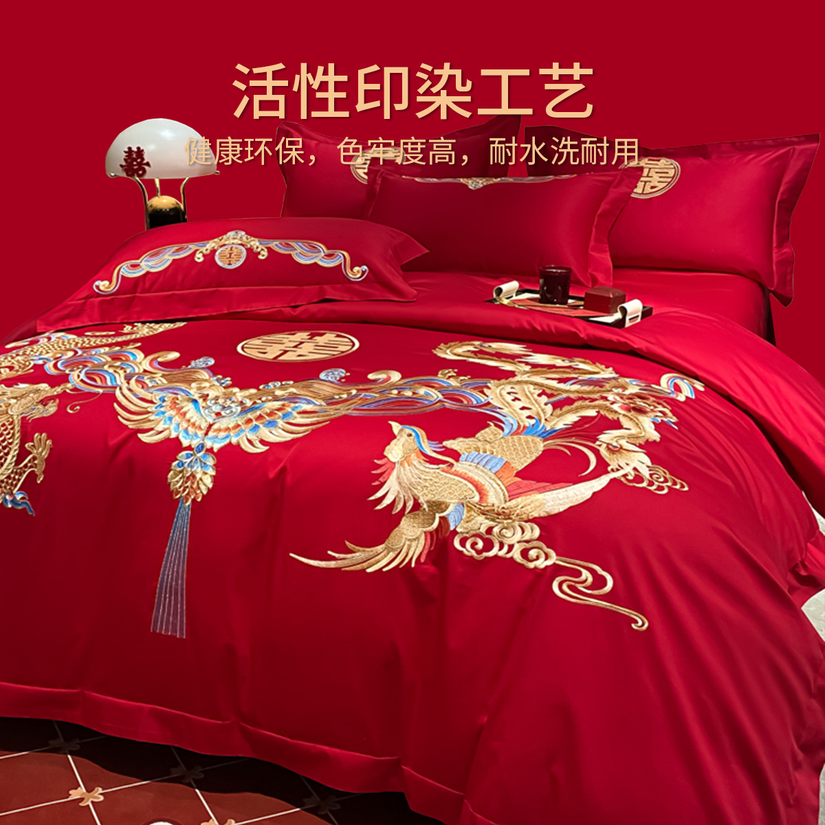 红豆全棉婚庆结婚四件套纯棉喜庆婚嫁床上用品新婚大红色床单被套