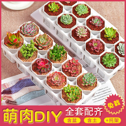 镜绿全套配齐多肉盆栽迷你可爱萌肉肉室内阳台桌面花卉含盆土托架