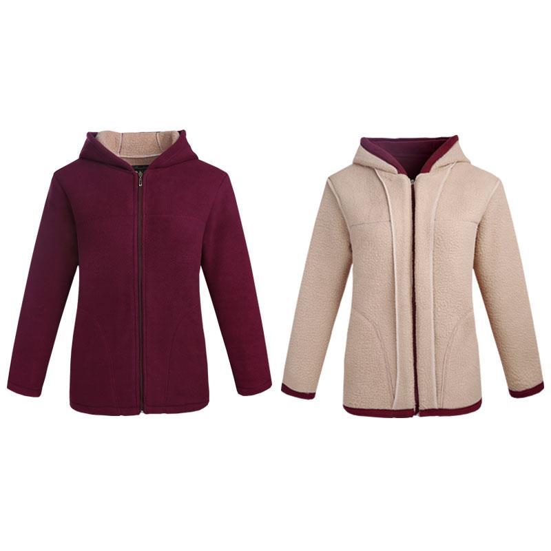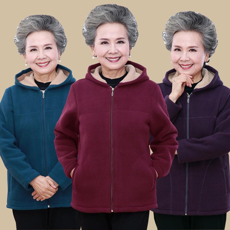 b2/49中老年人摇粒绒外套女妈妈秋装连帽卫衣加厚加绒奶奶冬装