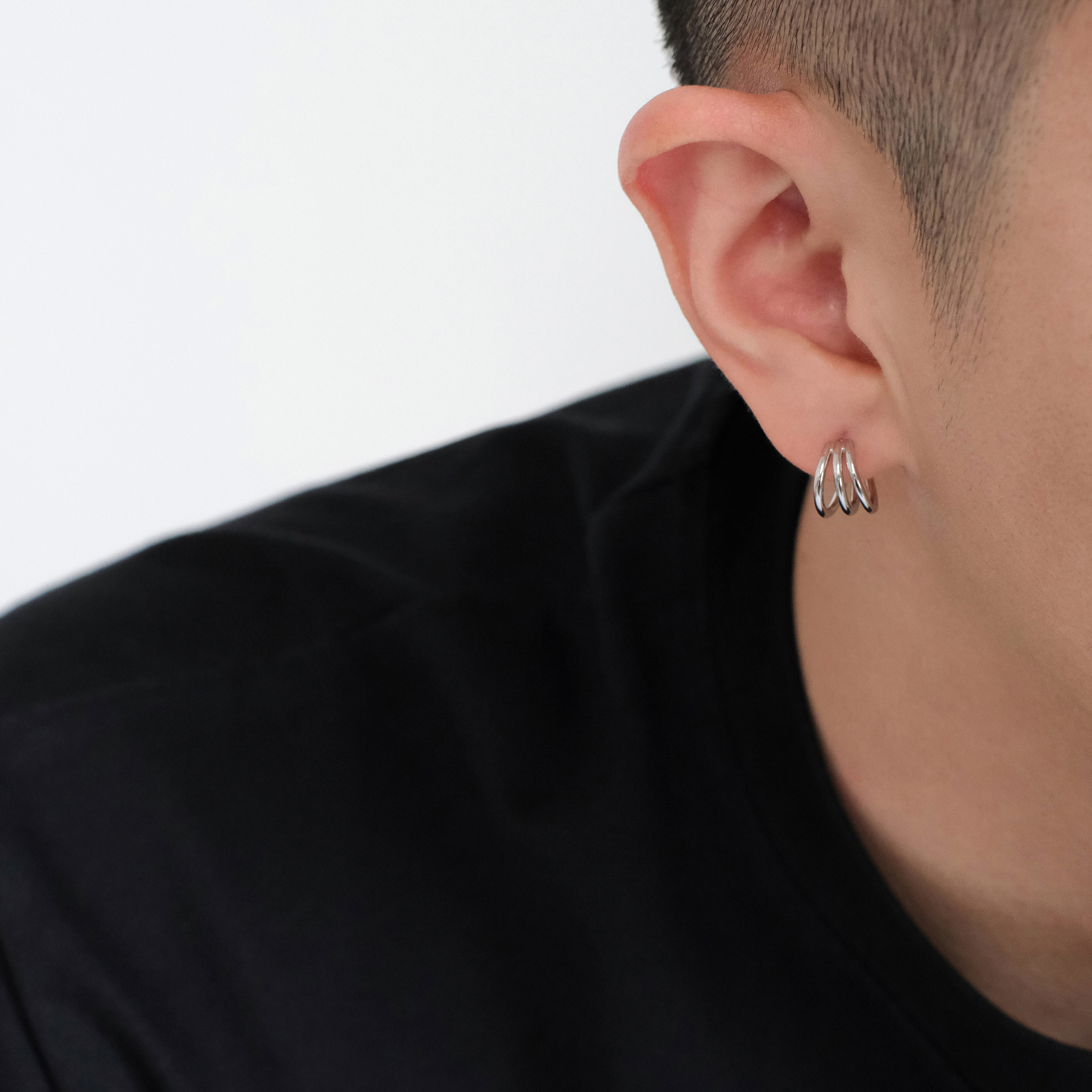 FourPin三环圆圈耳钉小众设计感日韩简约甜酷潮流999纯银耳饰男女