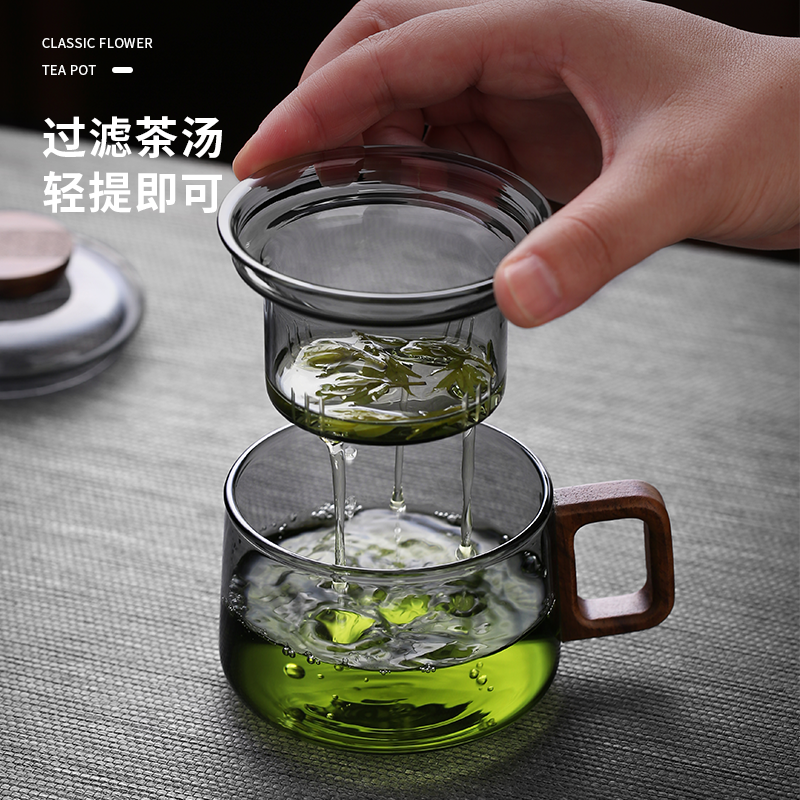 玻璃小茶杯耐高温个人专用高档主人迷你杯办公室喝茶泡茶茶水分离
