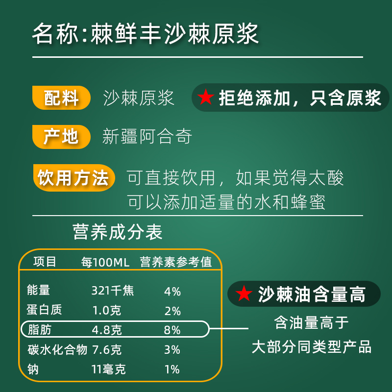 棘鲜丰有机沙棘官方旗舰店新疆vc沙棘原浆生榨原液沙棘30ml*32瓶