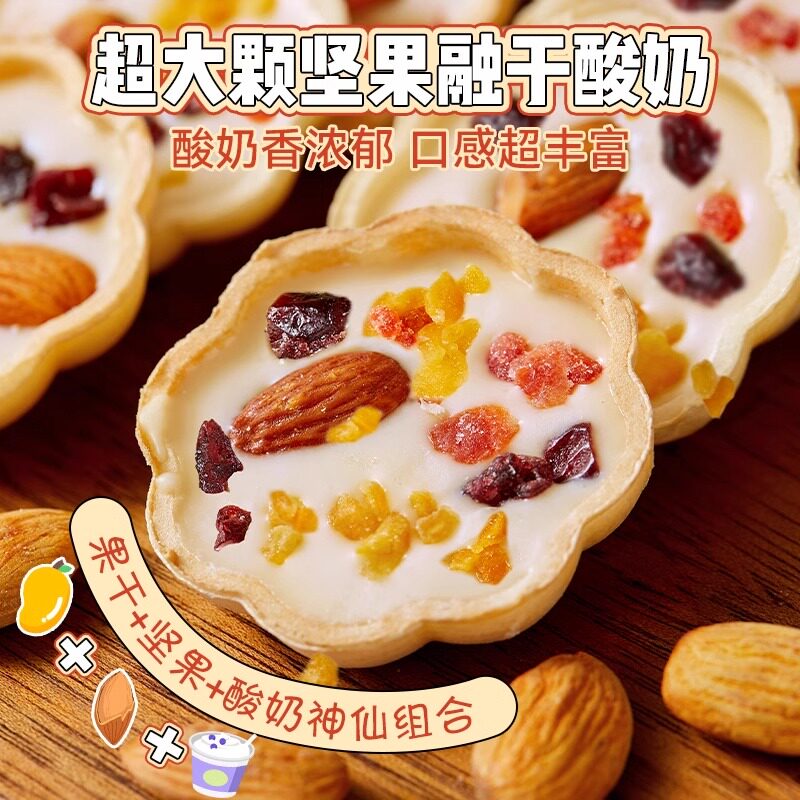 酸奶味超浓郁!坚果炒酸奶片新疆芒果干巴旦木蔓越莓酸奶休闲零食