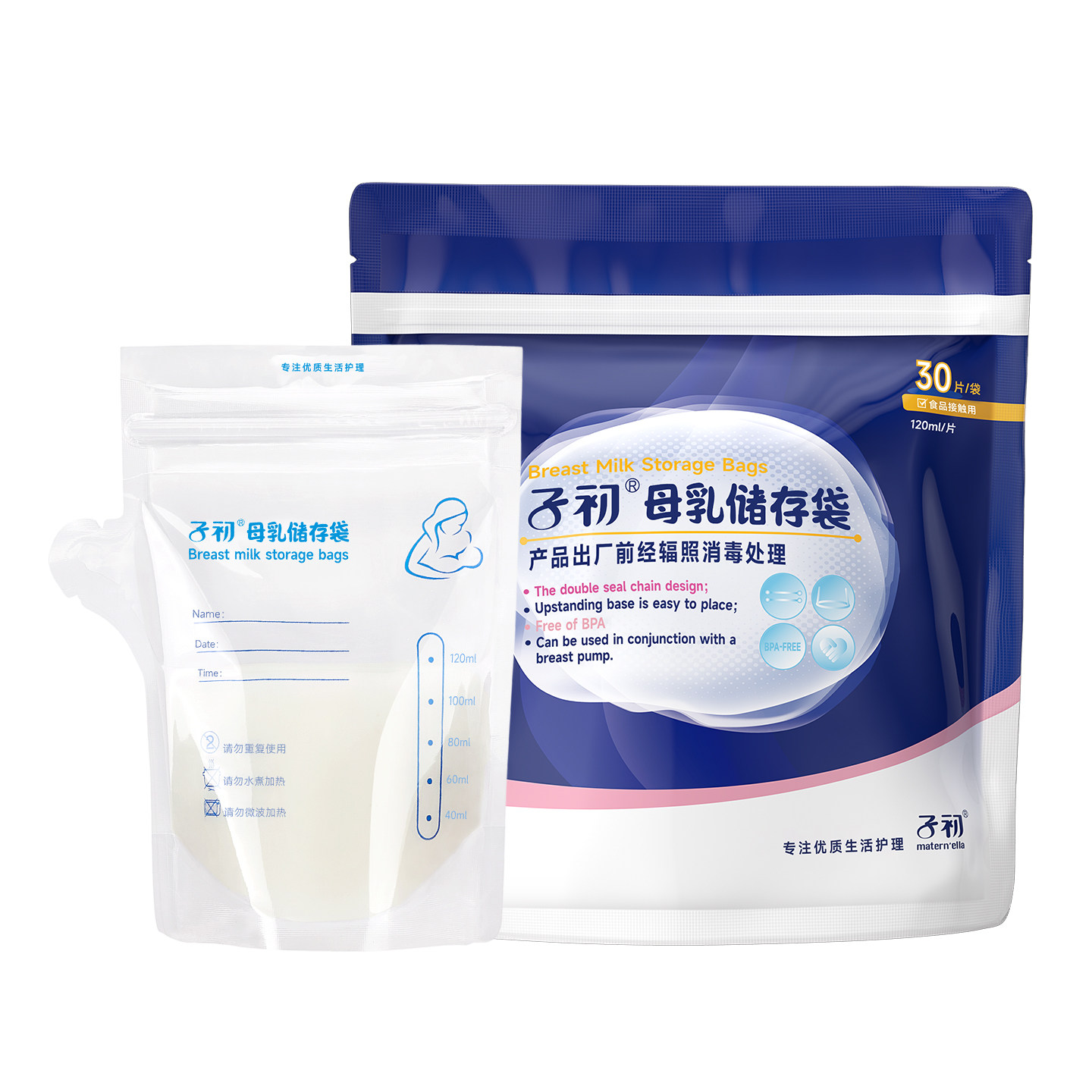 子初储奶袋冰箱母乳专用保鲜袋小容量存奶袋120ml冷冻袋保鲜奶袋