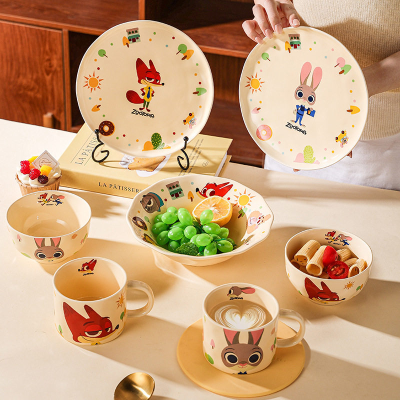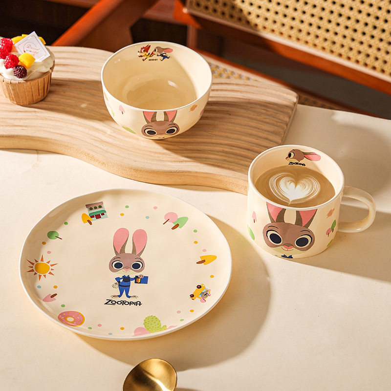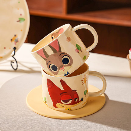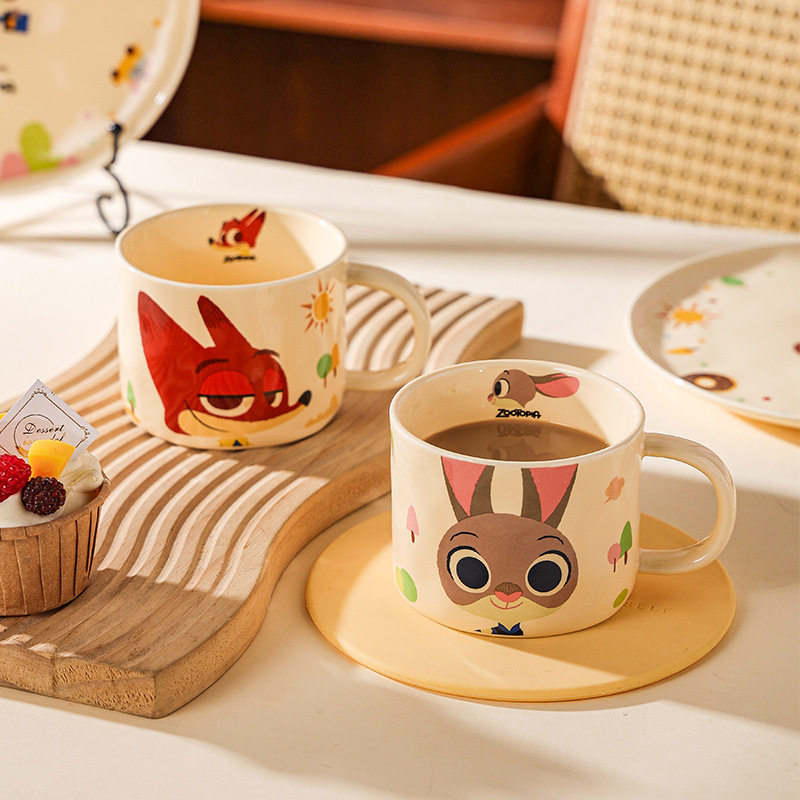 迪士尼疯狂动物城陶瓷马克杯颜值情侣水杯女生早餐杯矮杯礼物套装