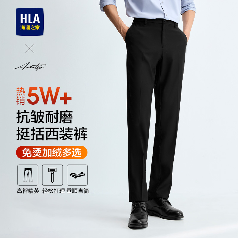 HLA/海澜之家轻商务直筒西裤加绒加厚可选25秋冬季新款通勤长裤男