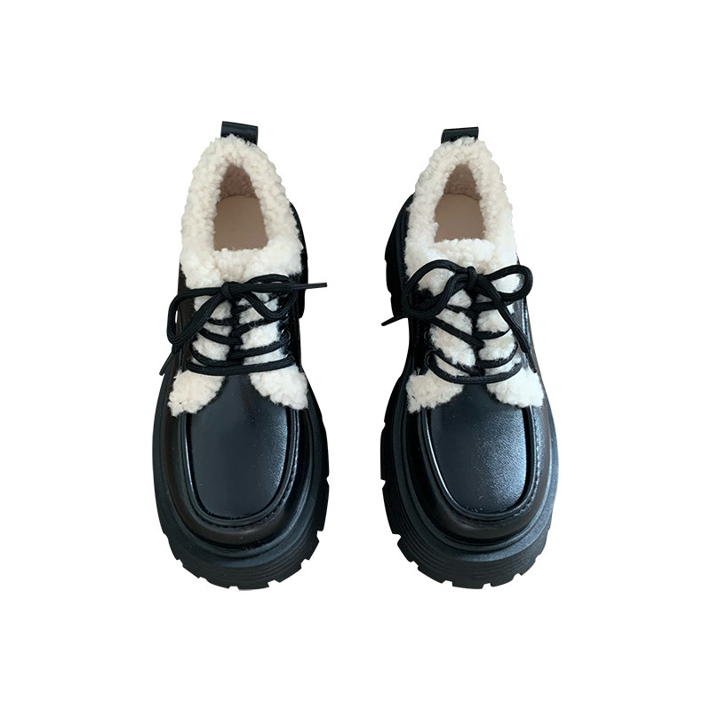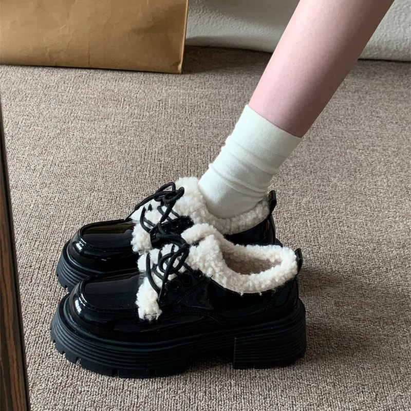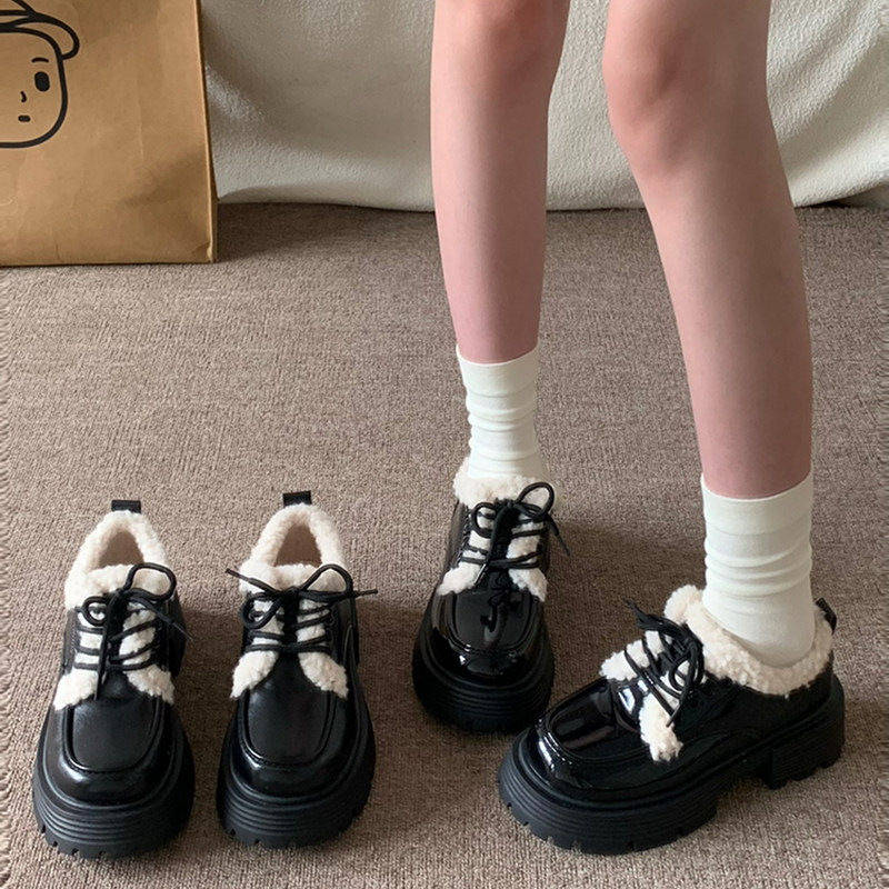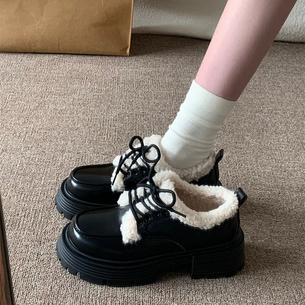 小sun家复古英伦风厚底加绒小皮鞋女2025年秋季新款日系ik系带棉