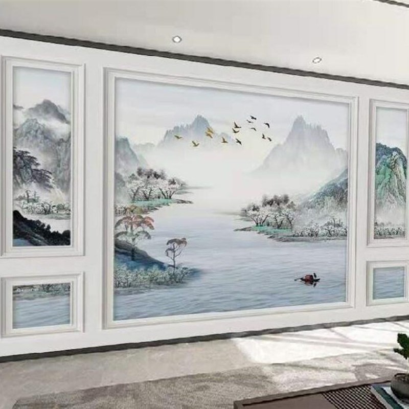 五宫格自带边框电视背景墙壁纸壁画简约现代客厅沙发墙纸影视墙布