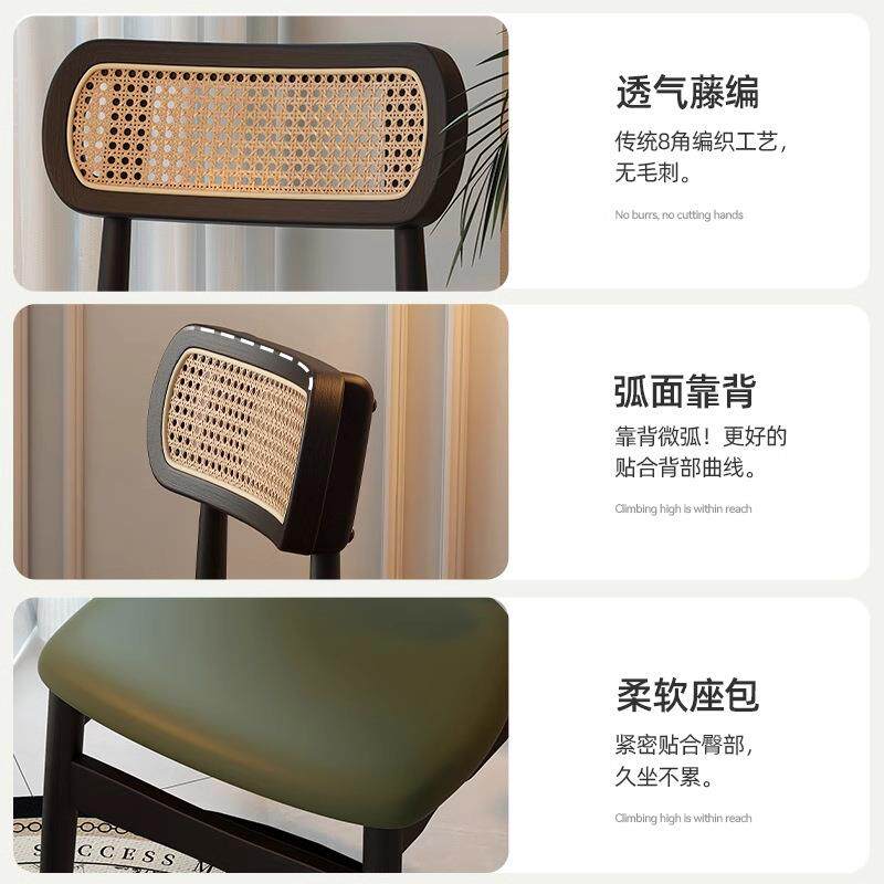 实木餐椅家用编北子欧中古风藤椅靠背闲椅餐厅吃饭餐桌椅凳NBZ-23