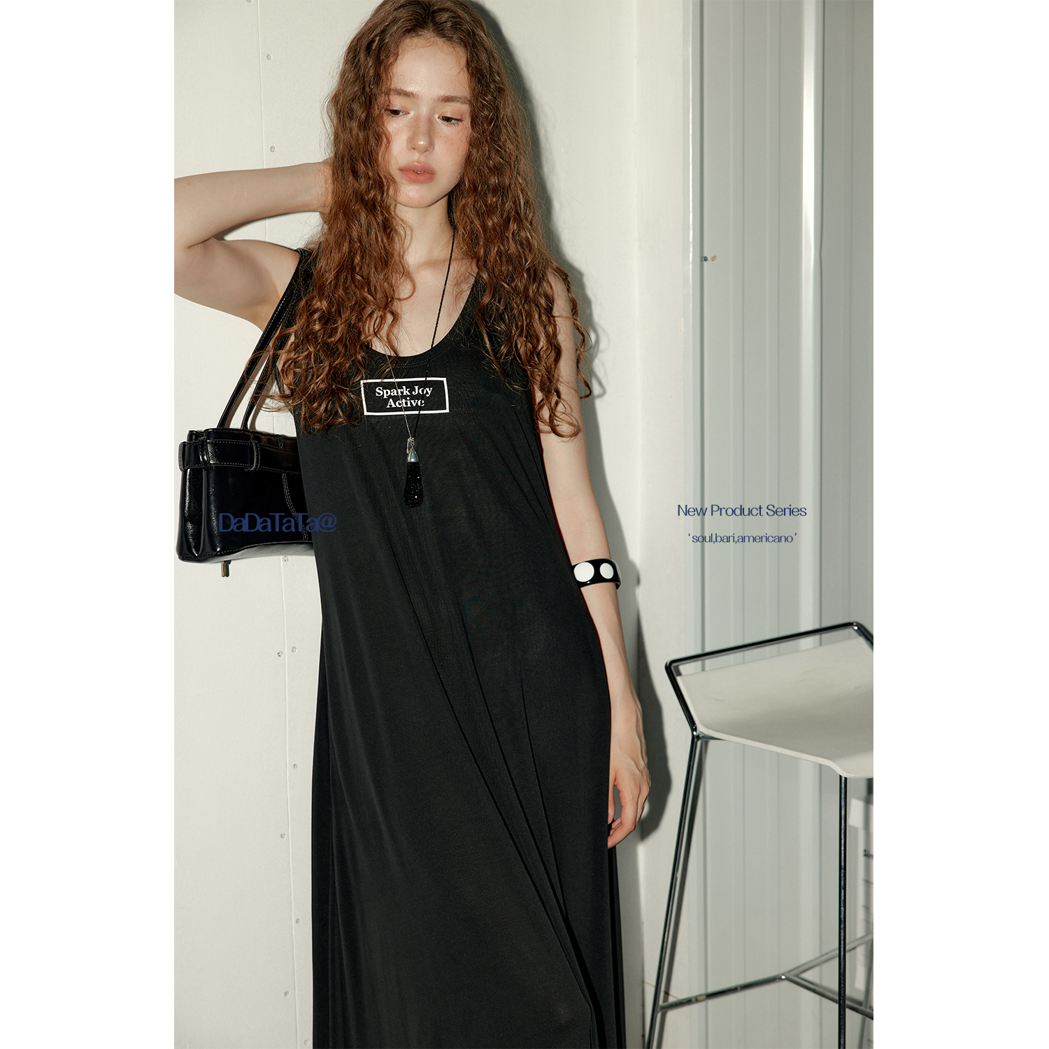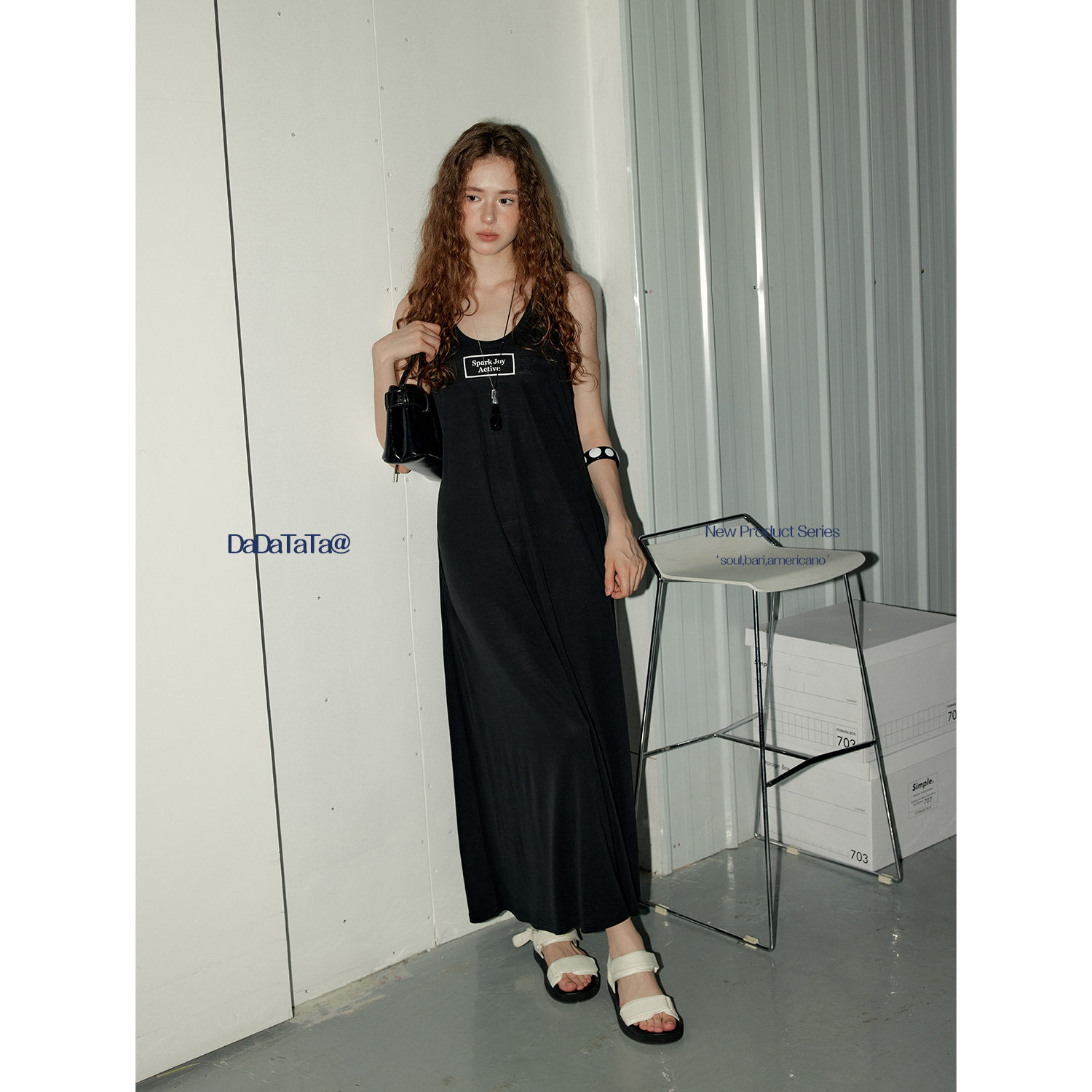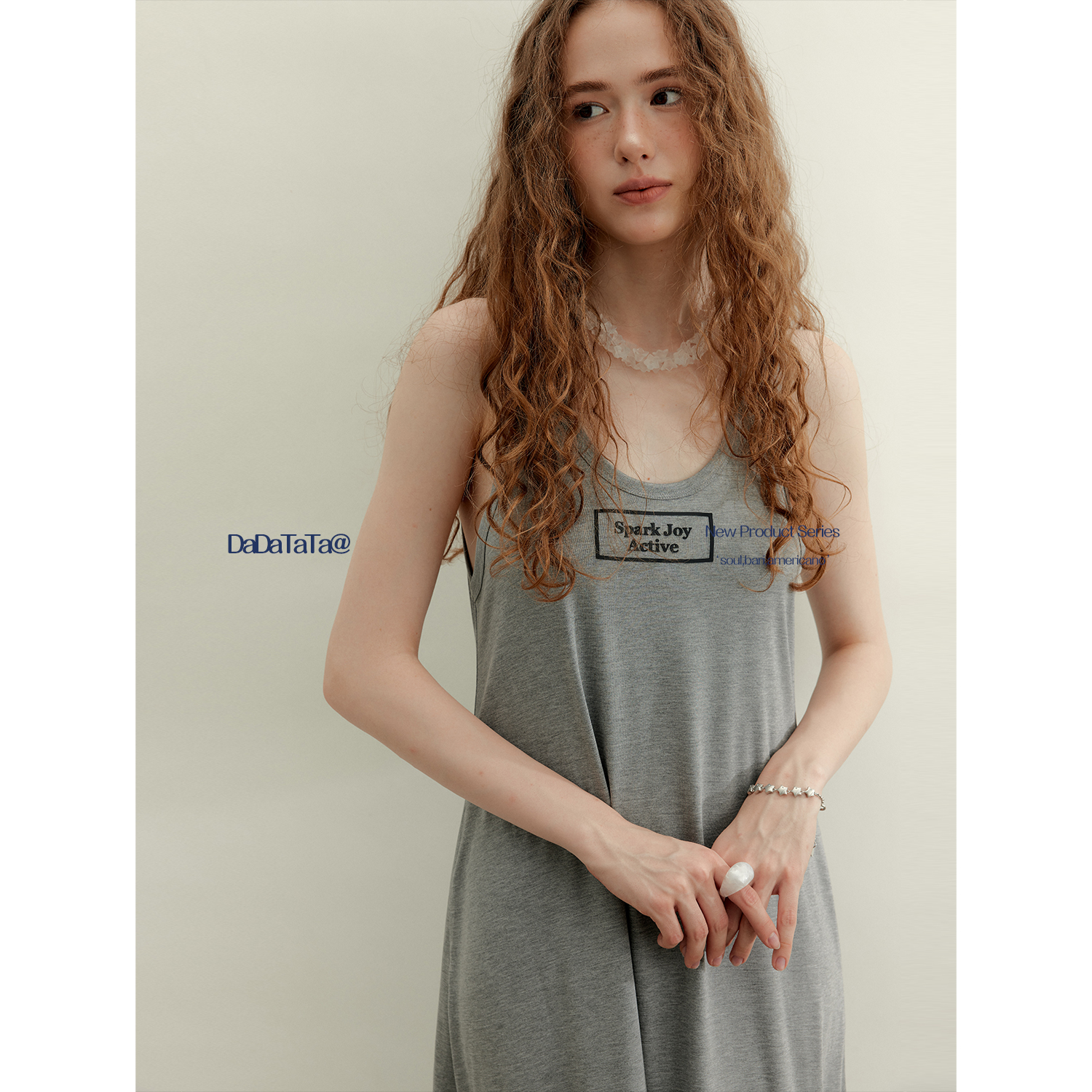 晶咕白标DADATATA【襟织漫舞】纯色捏褶针织背心连衣裙女大码长裙